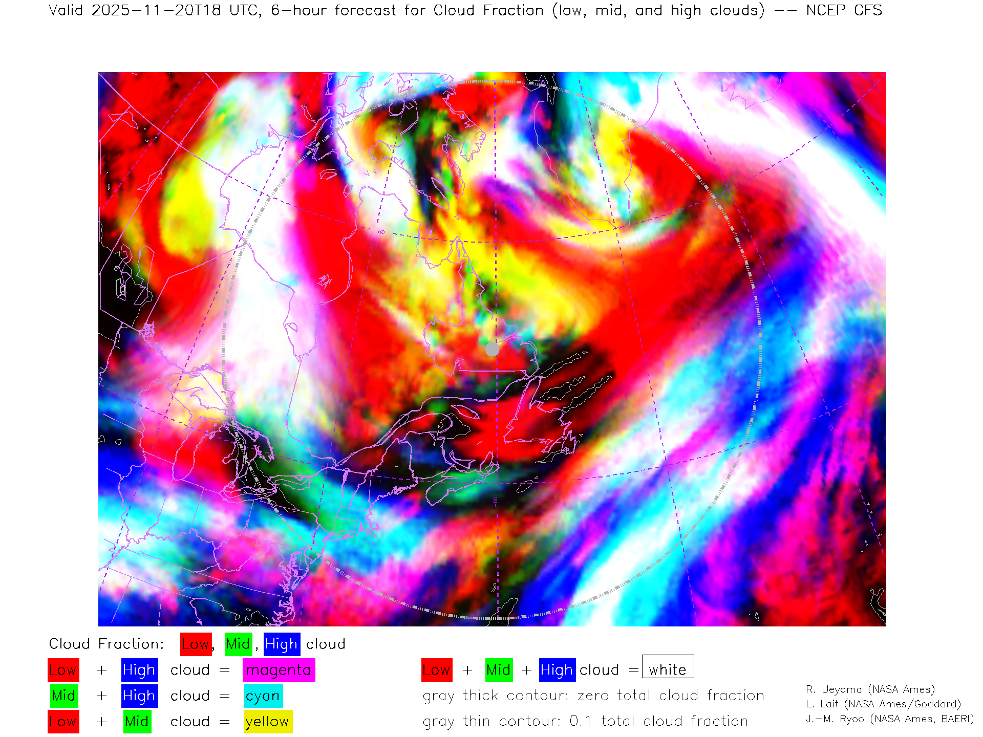 NCEP GFS Forecast Low-, Mid- and High-level Cloud Fraction