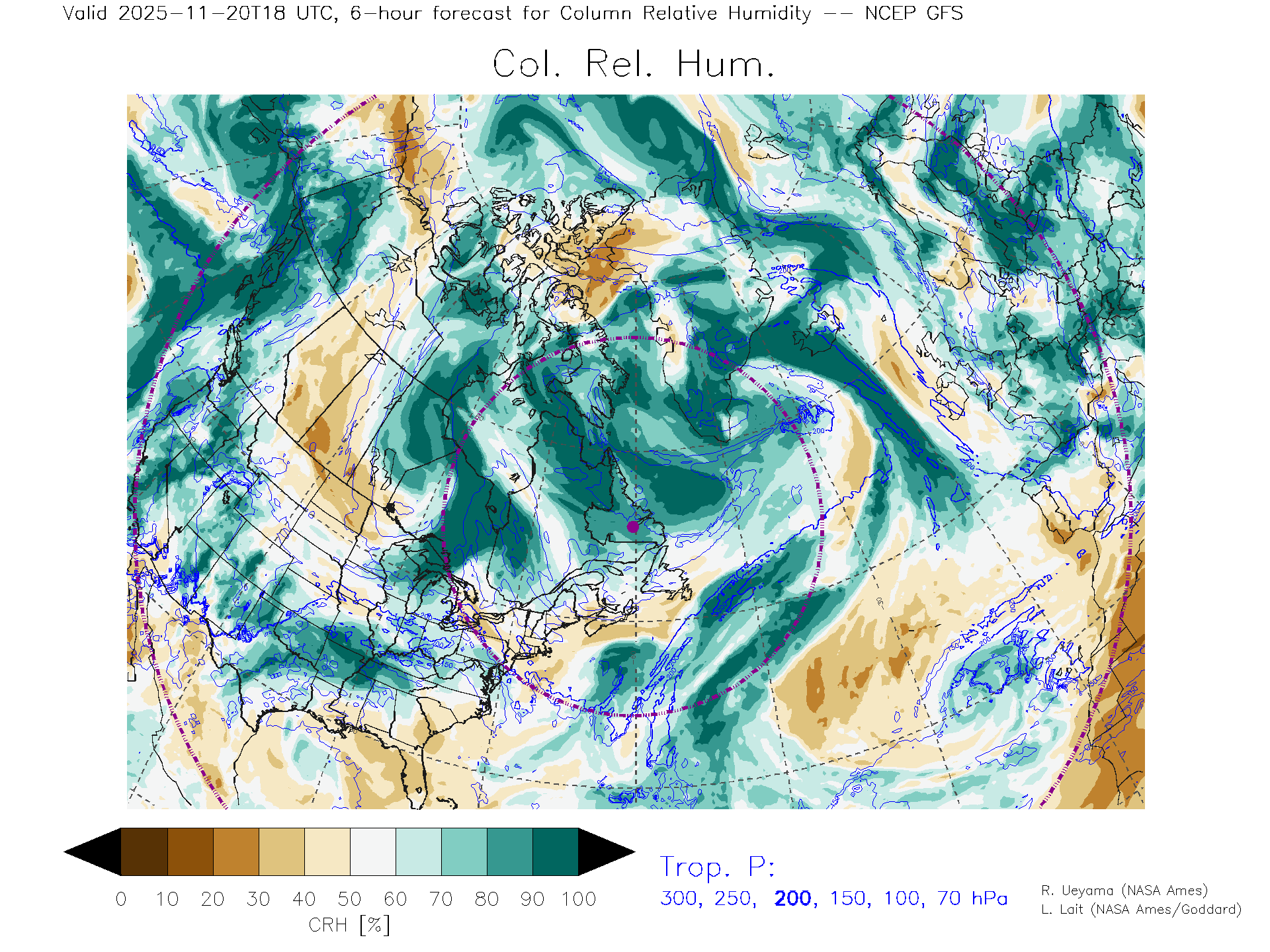 NCEP GFS Forecast Column Rel. Humidity