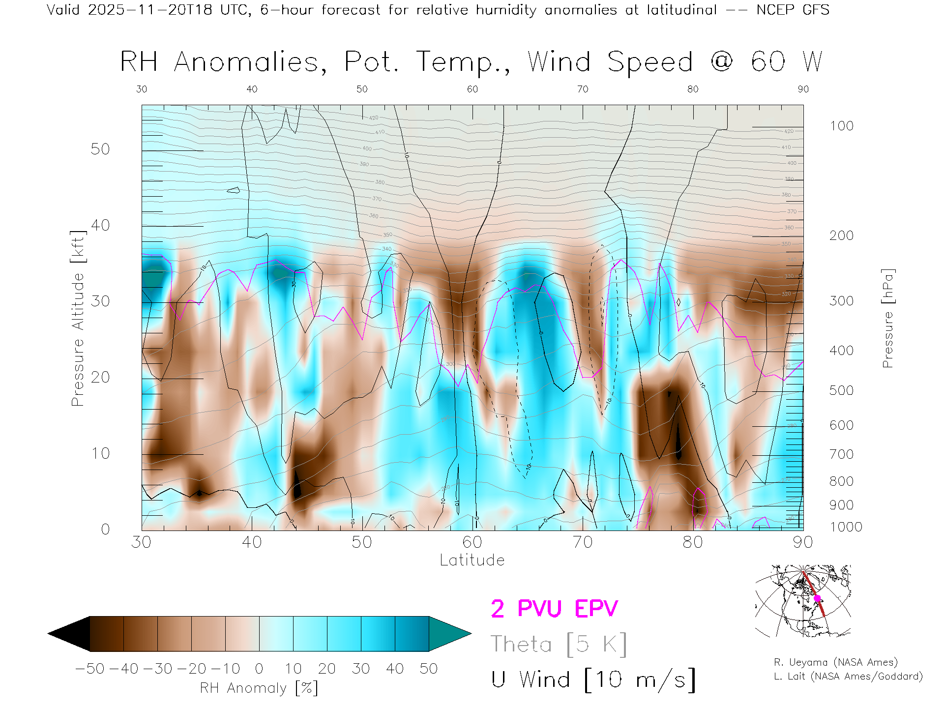 NCEP GFS Forecast Rel. Hum. X-Section (60 W)