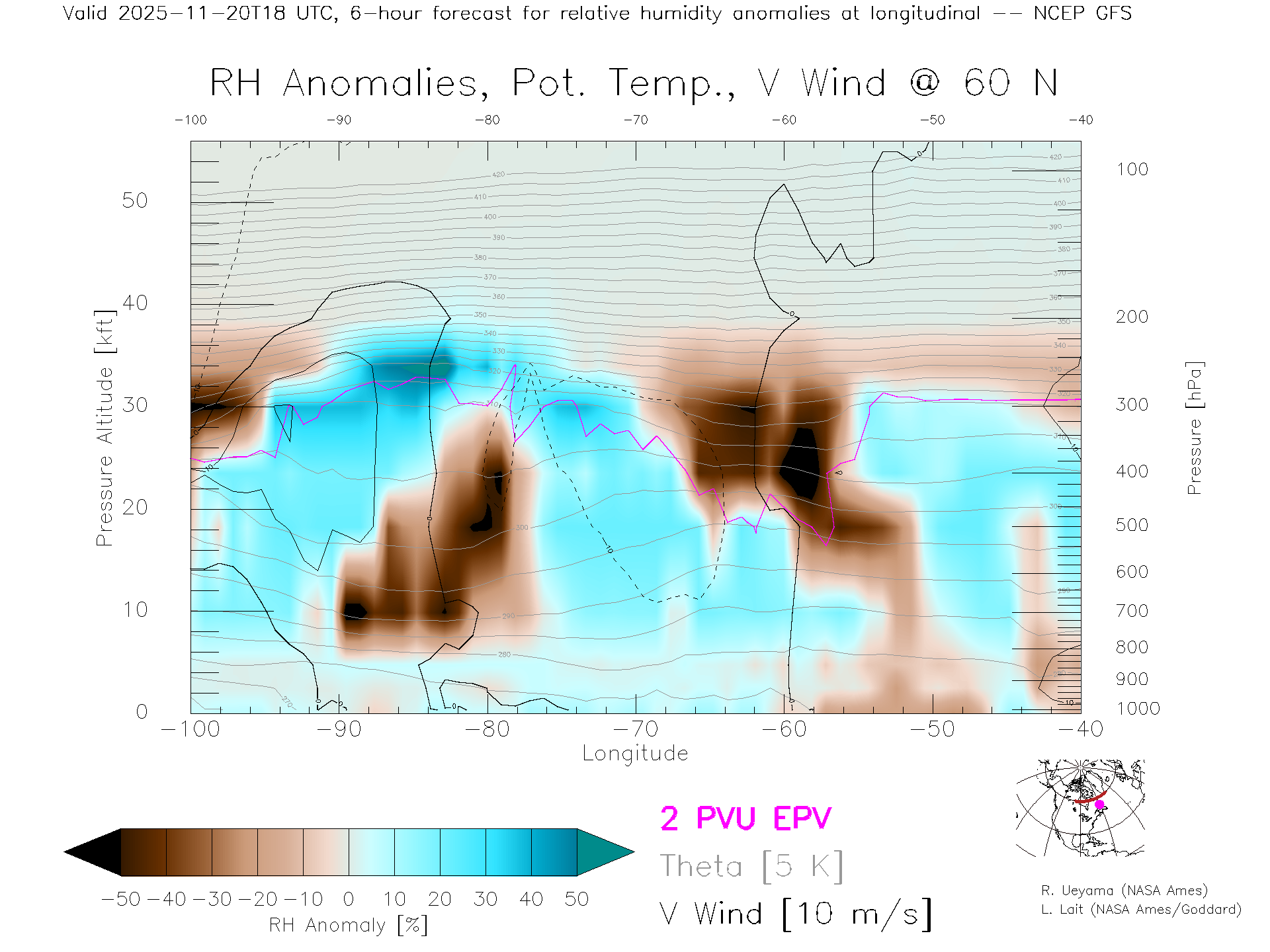 NCEP GFS Forecast Rel. Hum. X-Section (60 N)