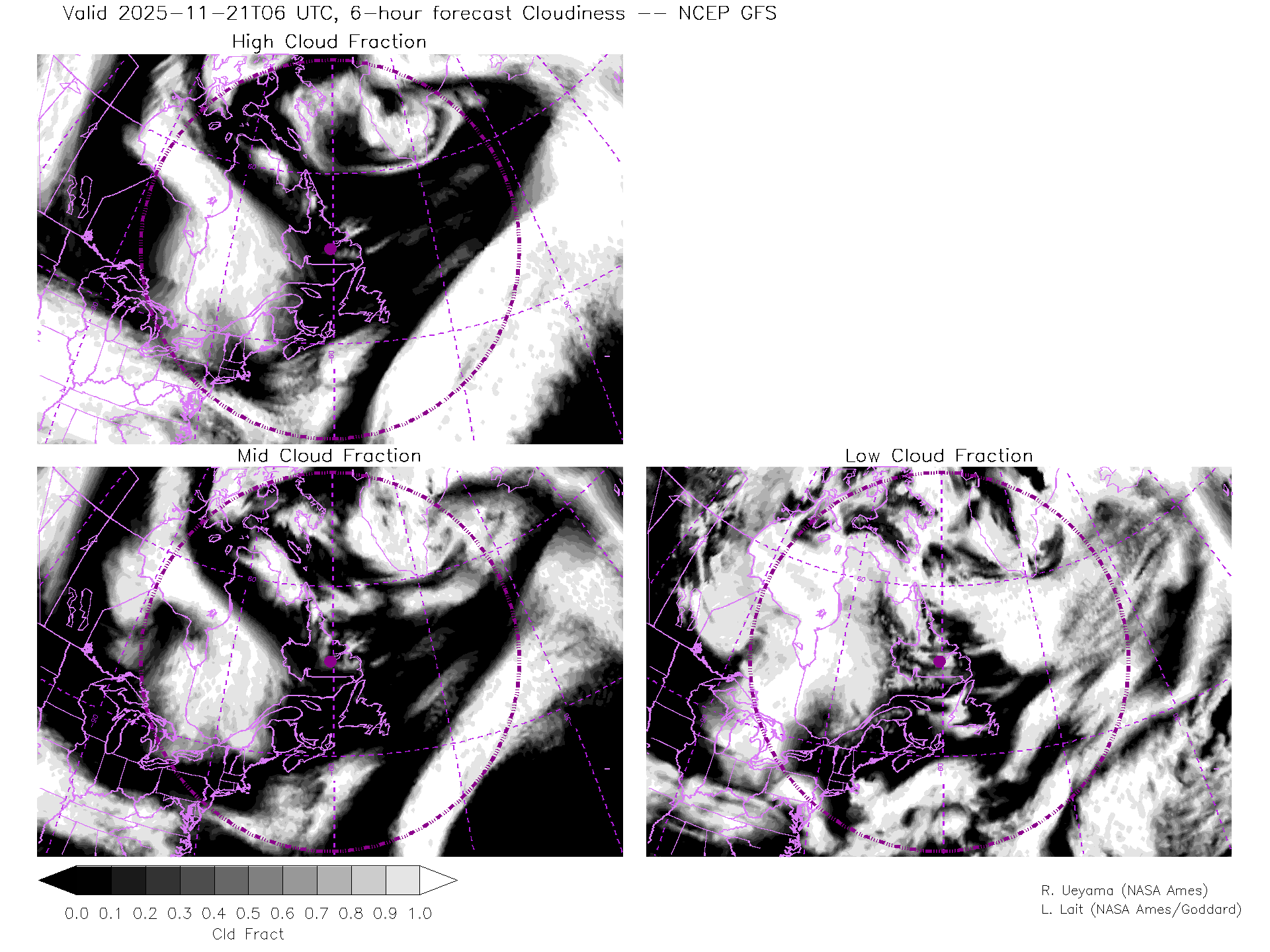 NCEP GFS Forecast Cloud Fraction (High, Mid, Low)