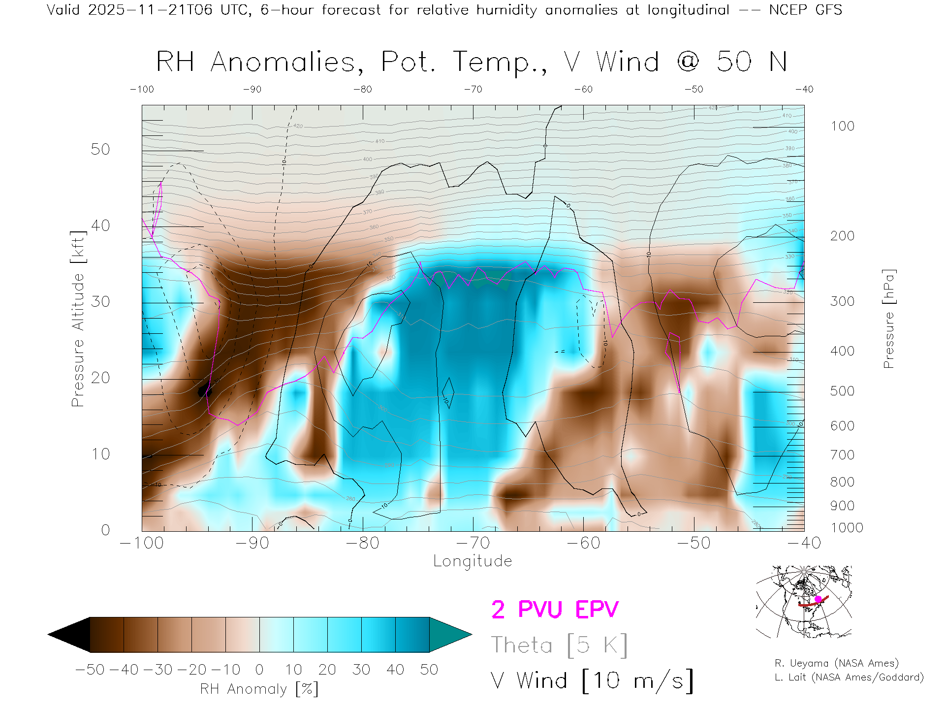 NCEP GFS Forecast Rel. Hum. X-Section (50 N)