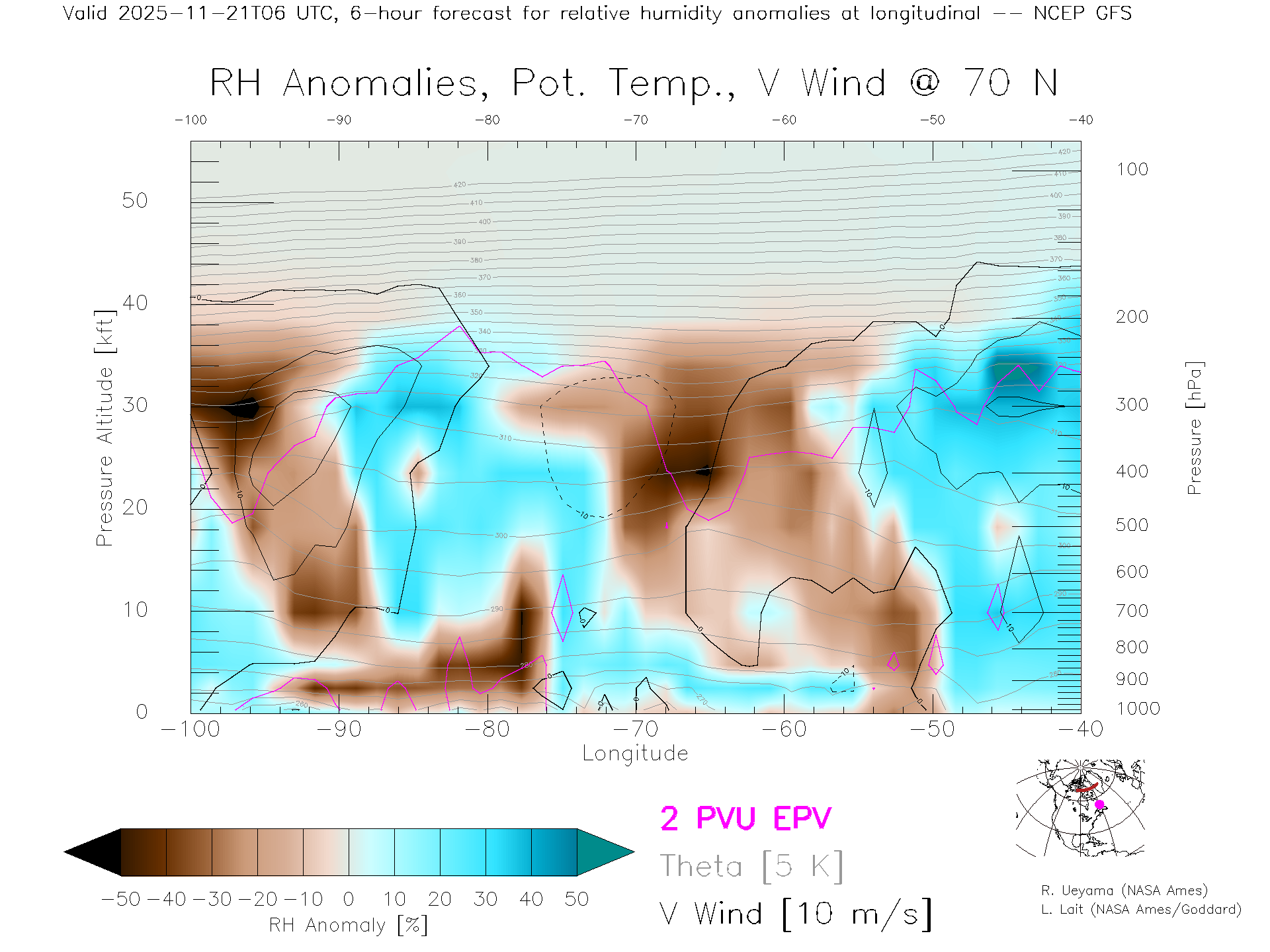 NCEP GFS Forecast Rel. Hum. X-Section (70 N)
