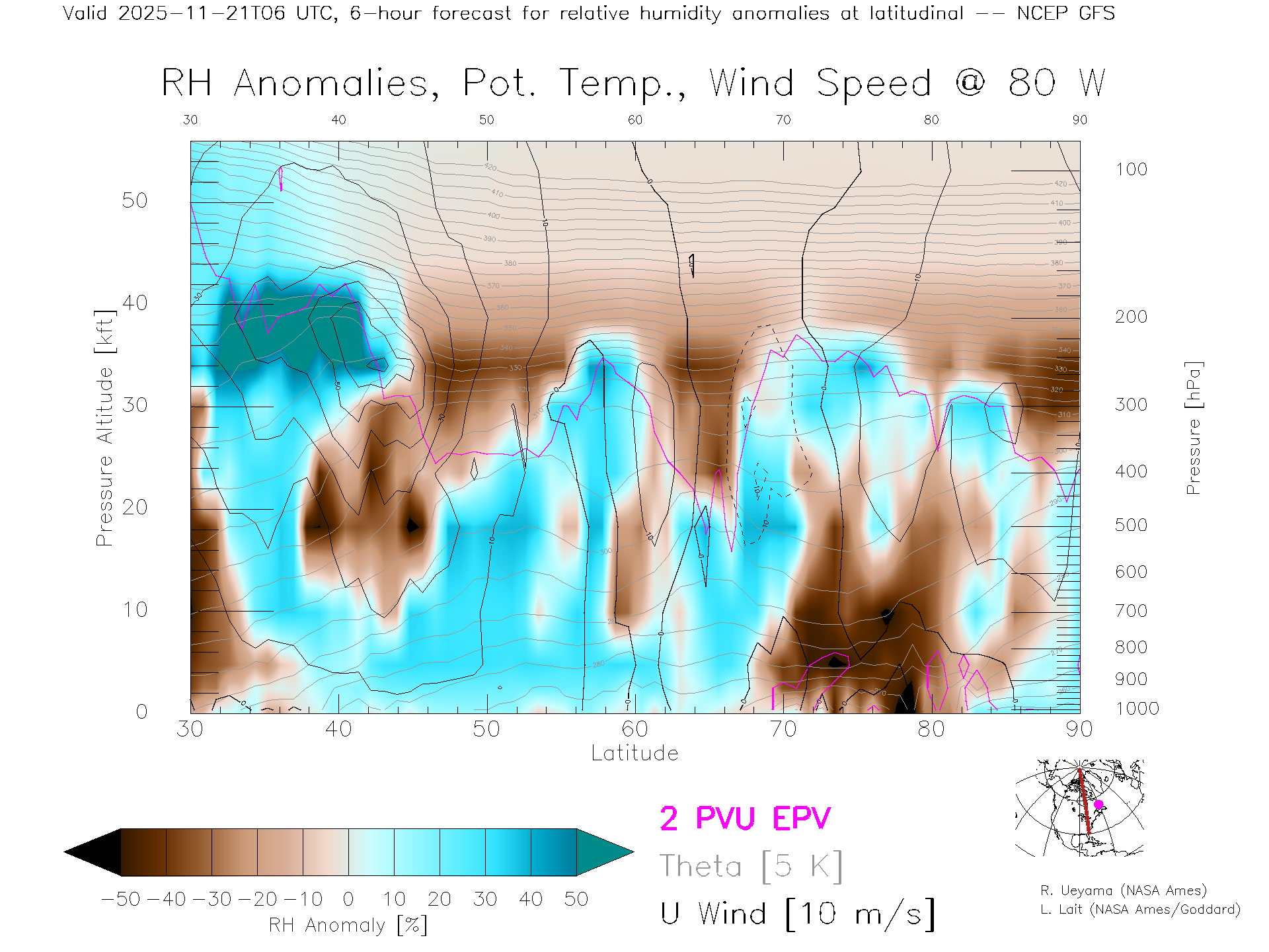 NCEP GFS Forecast Rel. Hum. X-Section (80 W)