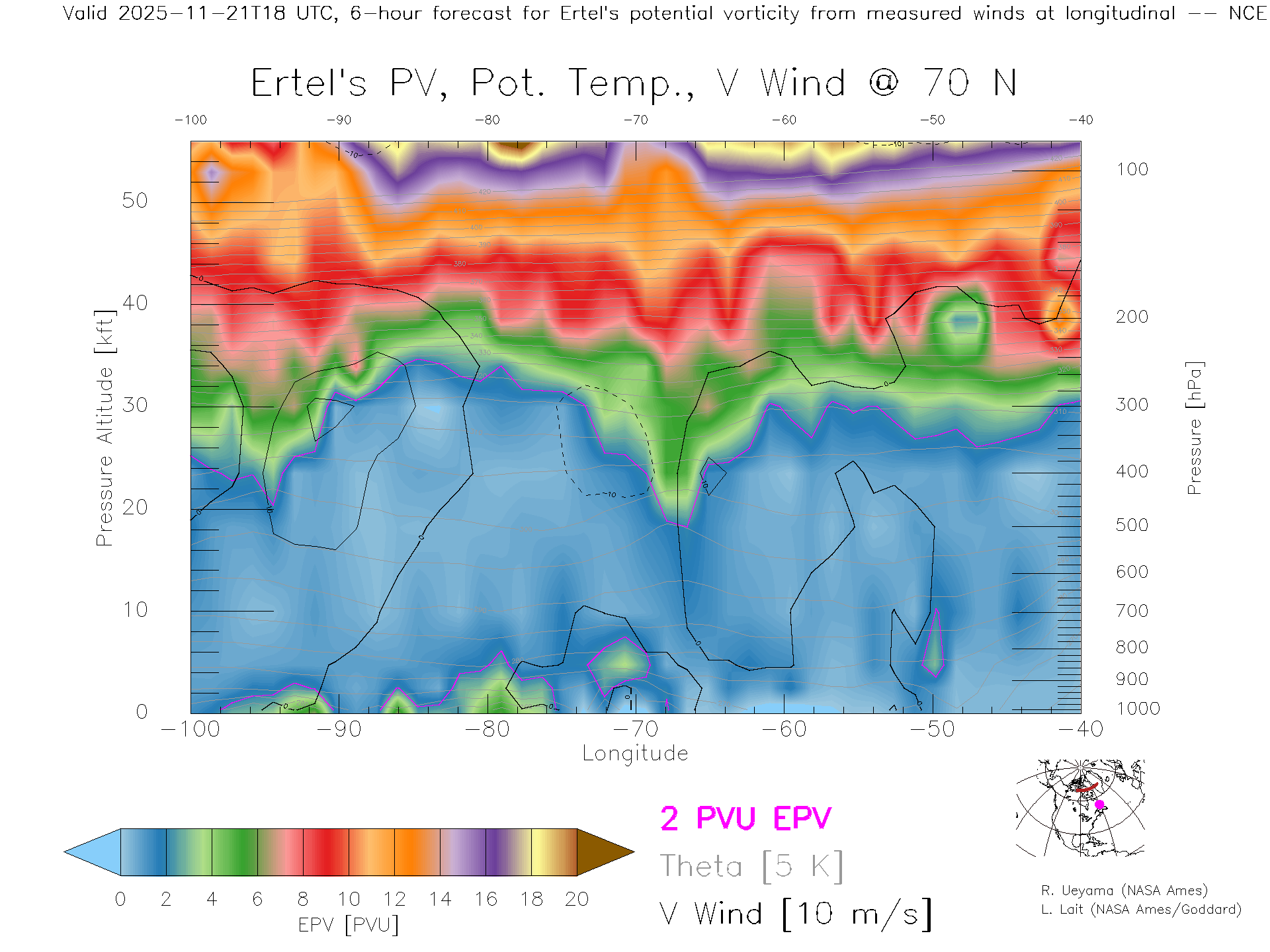 NCEP GFS Forecast PV X-Section (70 N)