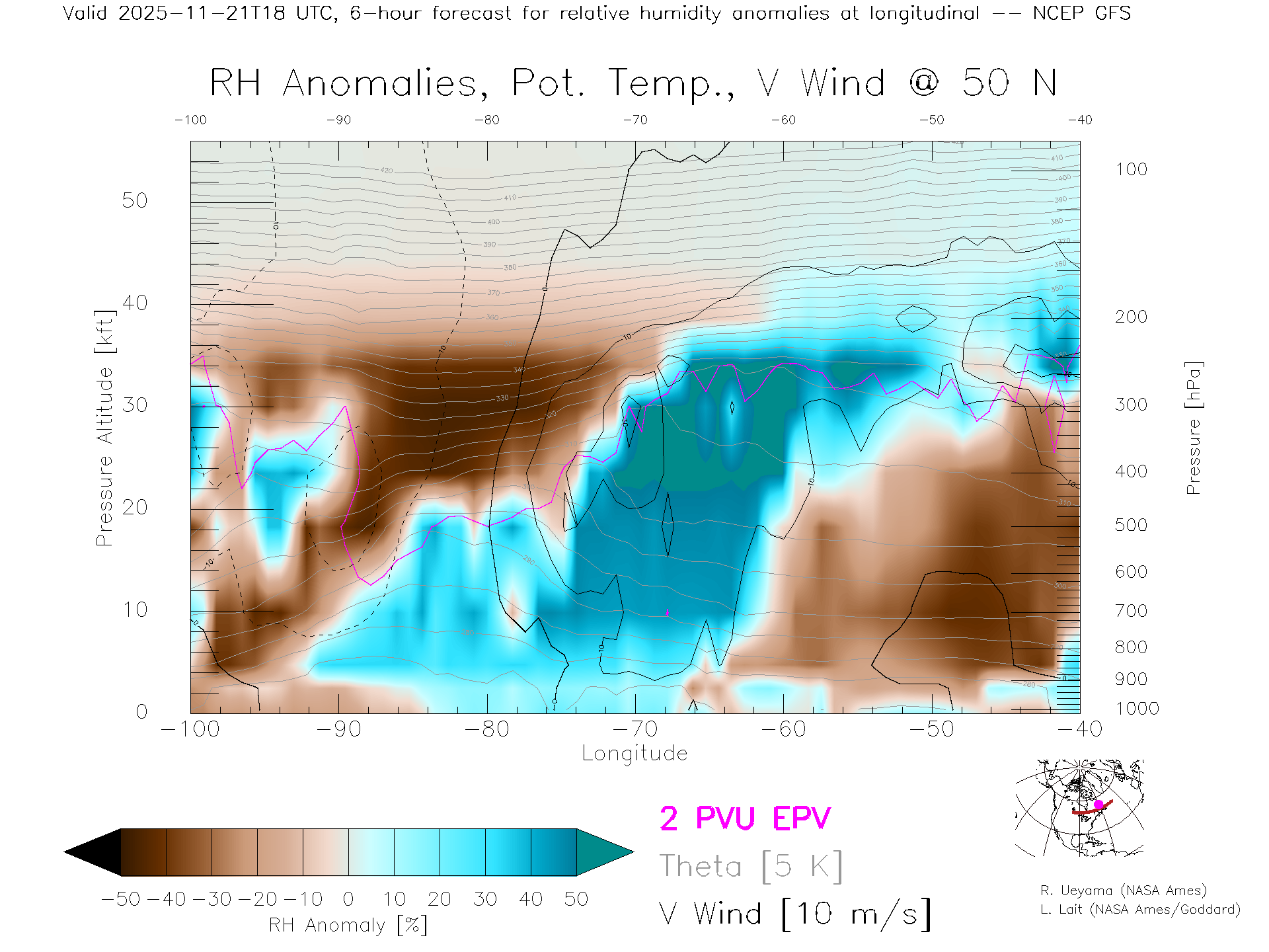 NCEP GFS Forecast Rel. Hum. X-Section (50 N)