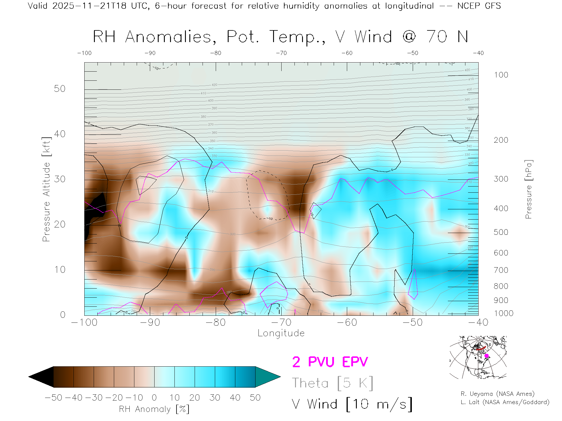 NCEP GFS Forecast Rel. Hum. X-Section (70 N)