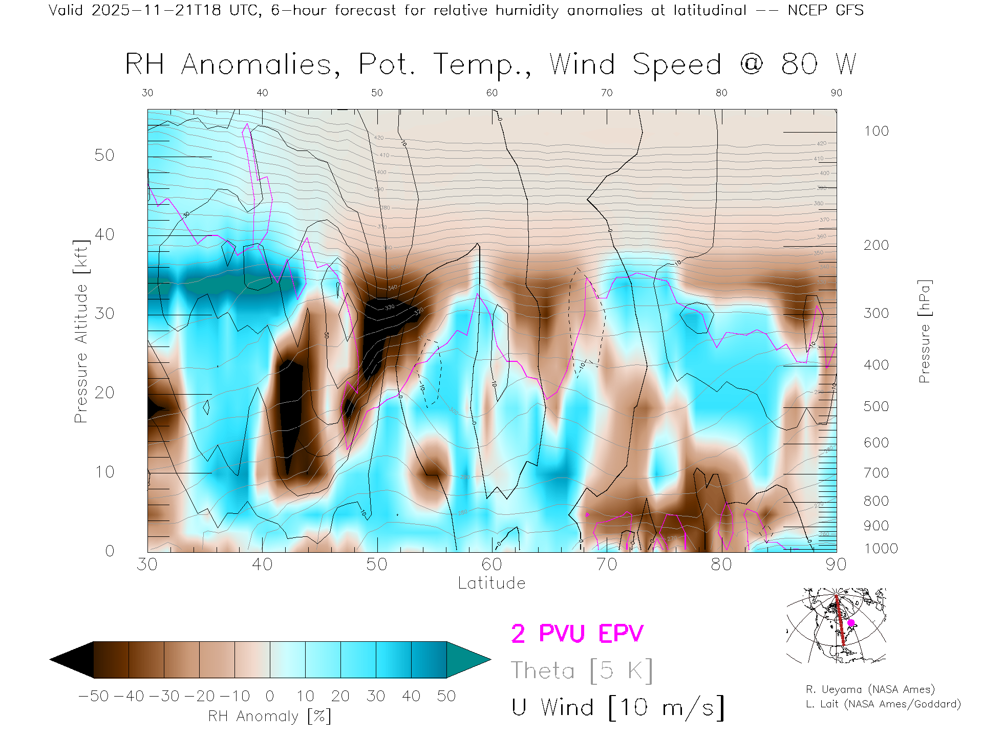 NCEP GFS Forecast Rel. Hum. X-Section (80 W)