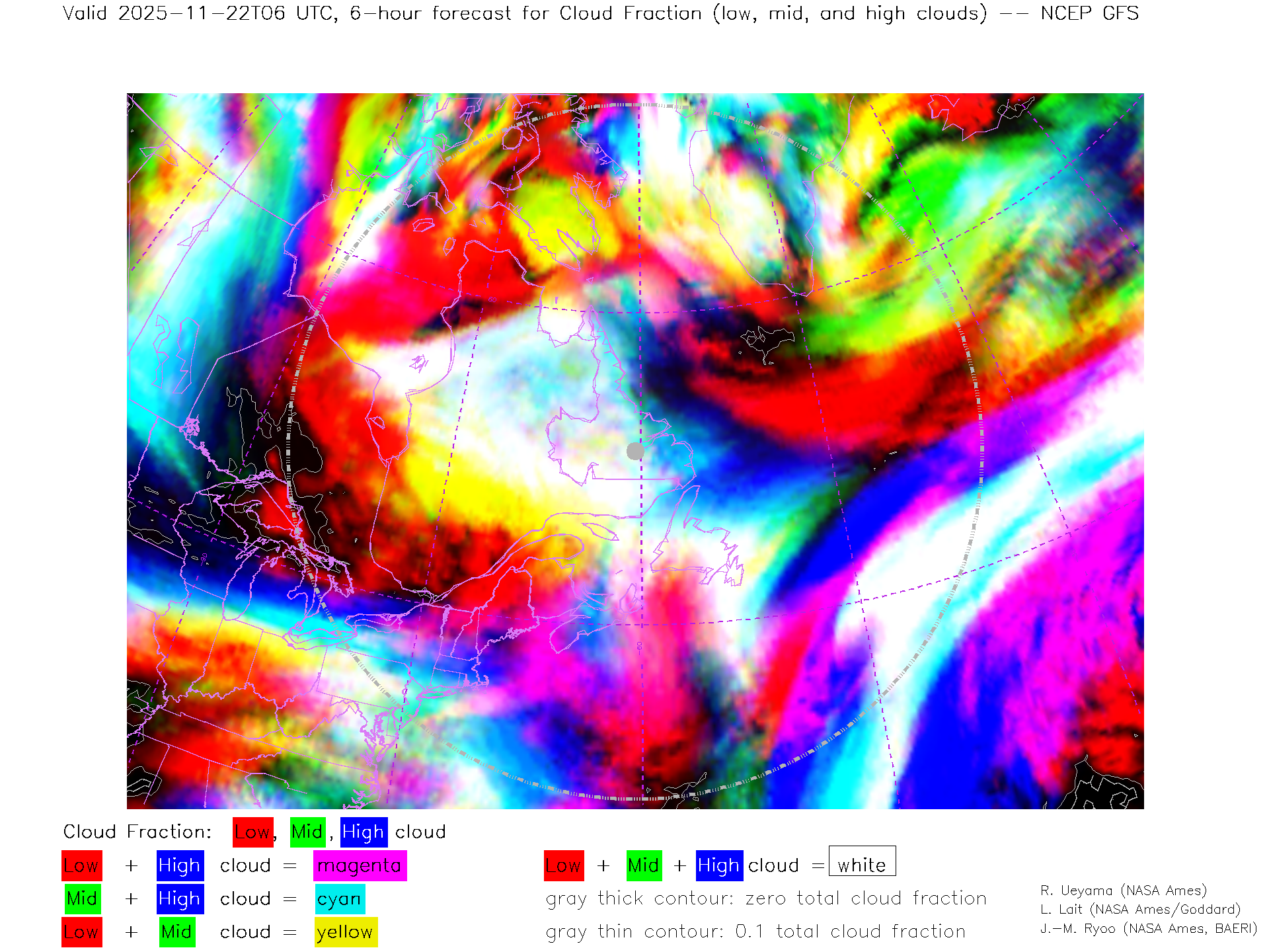 NCEP GFS Forecast Low-, Mid- and High-level Cloud Fraction