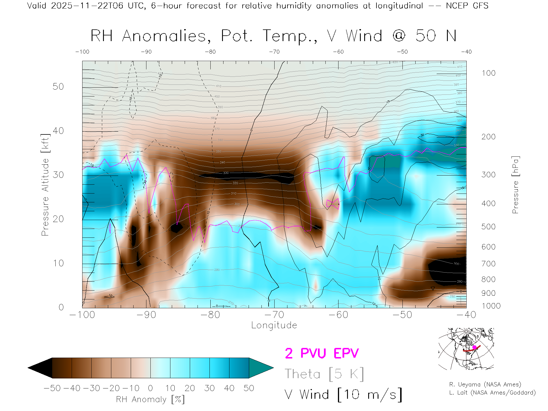 NCEP GFS Forecast Rel. Hum. X-Section (50 N)