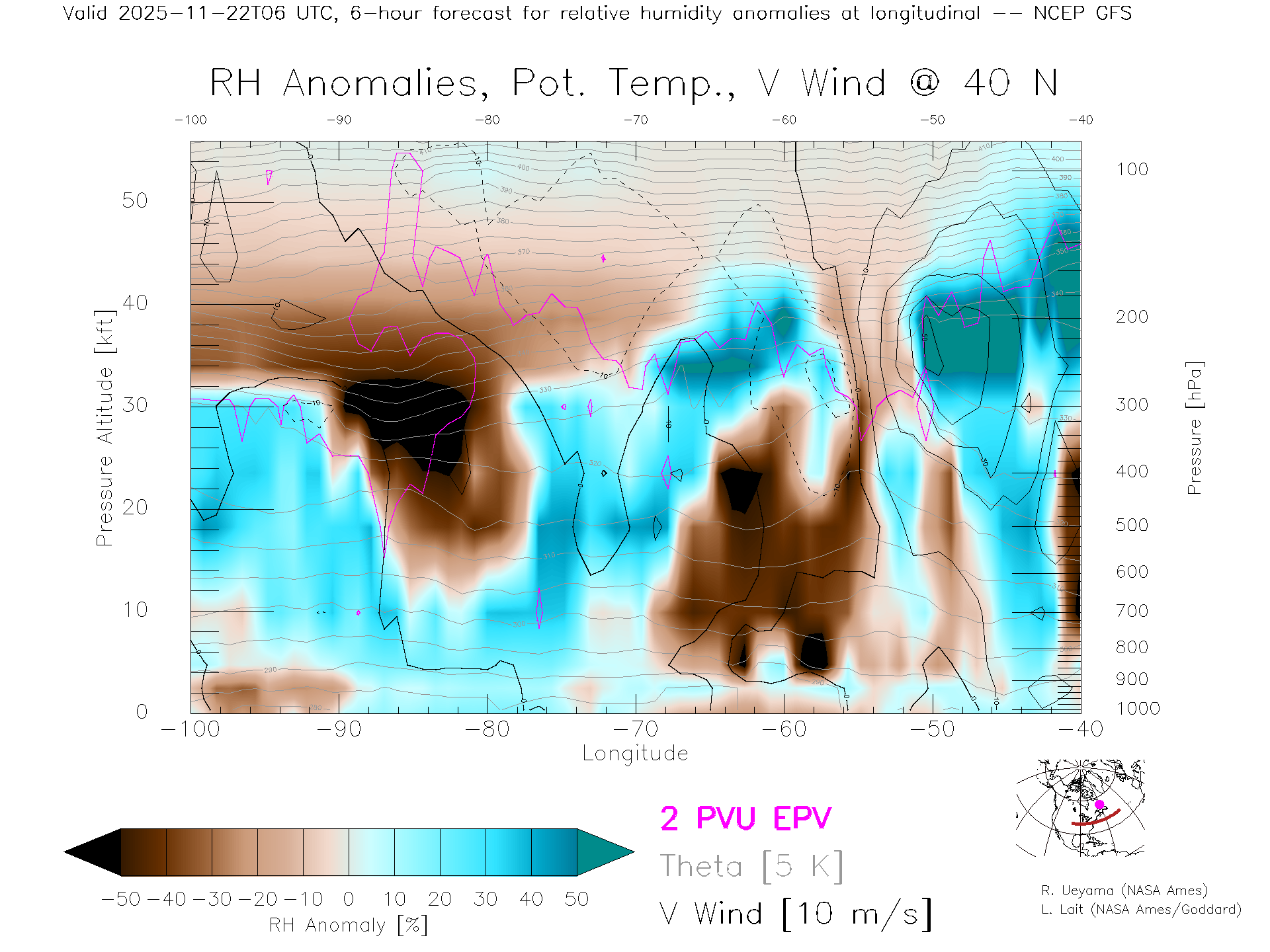 NCEP GFS Forecast Rel. Hum. X-Section (40 N)