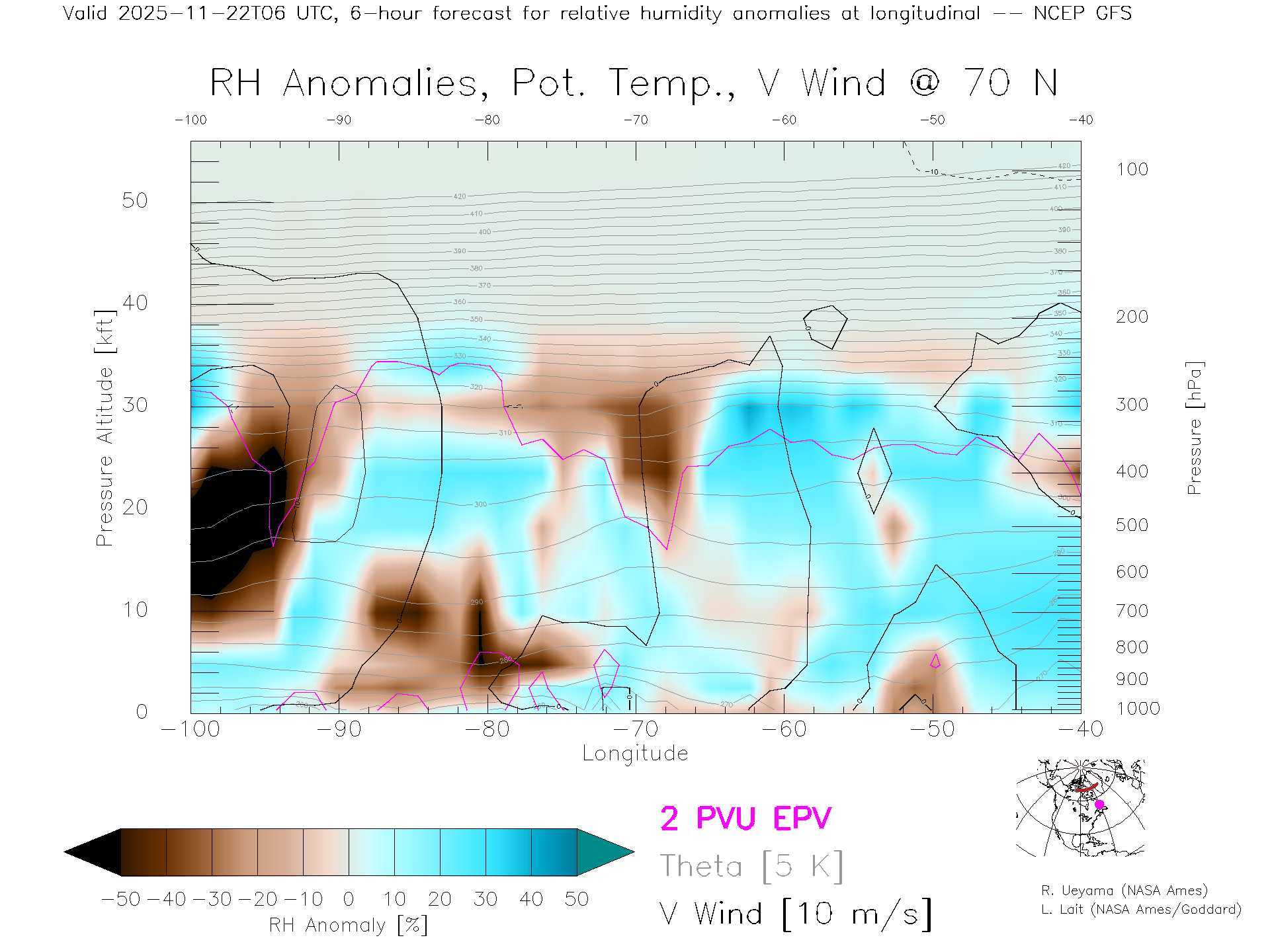 NCEP GFS Forecast Rel. Hum. X-Section (70 N)