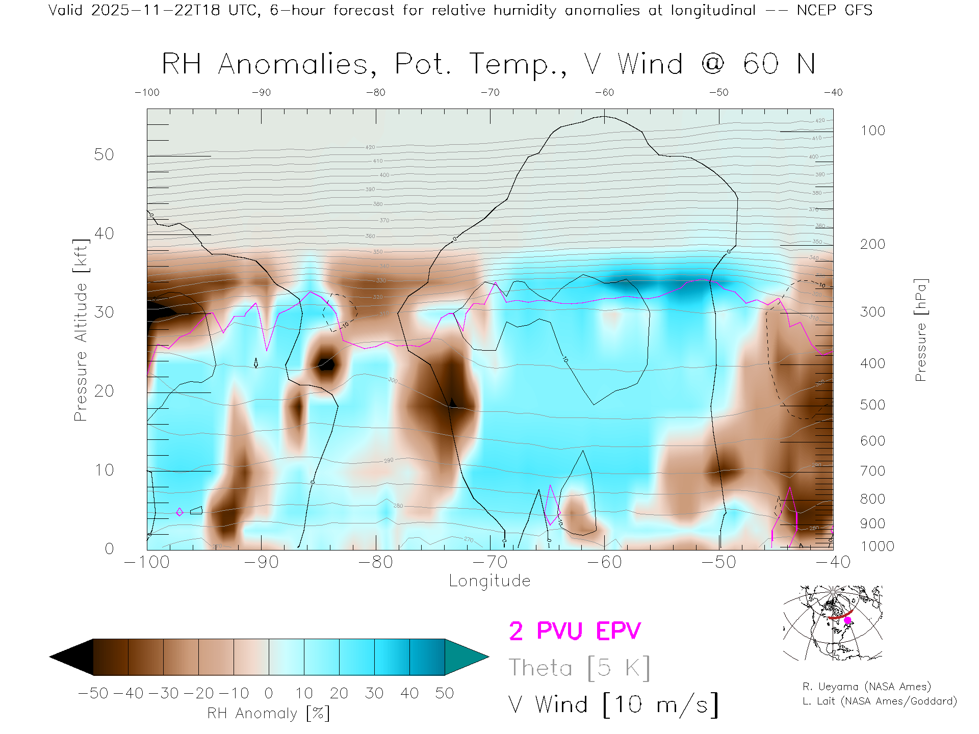 NCEP GFS Forecast Rel. Hum. X-Section (60 N)