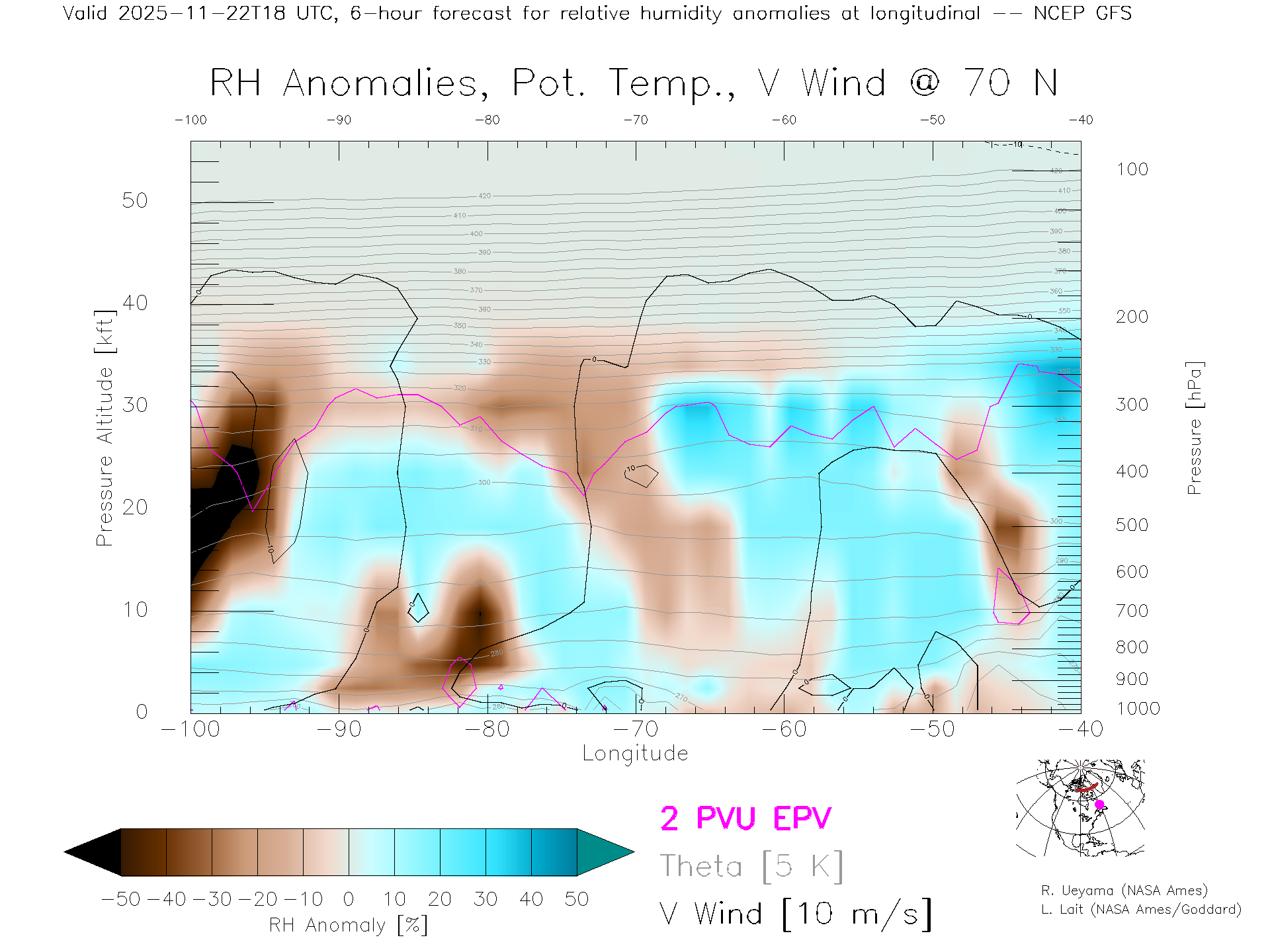 NCEP GFS Forecast Rel. Hum. X-Section (70 N)