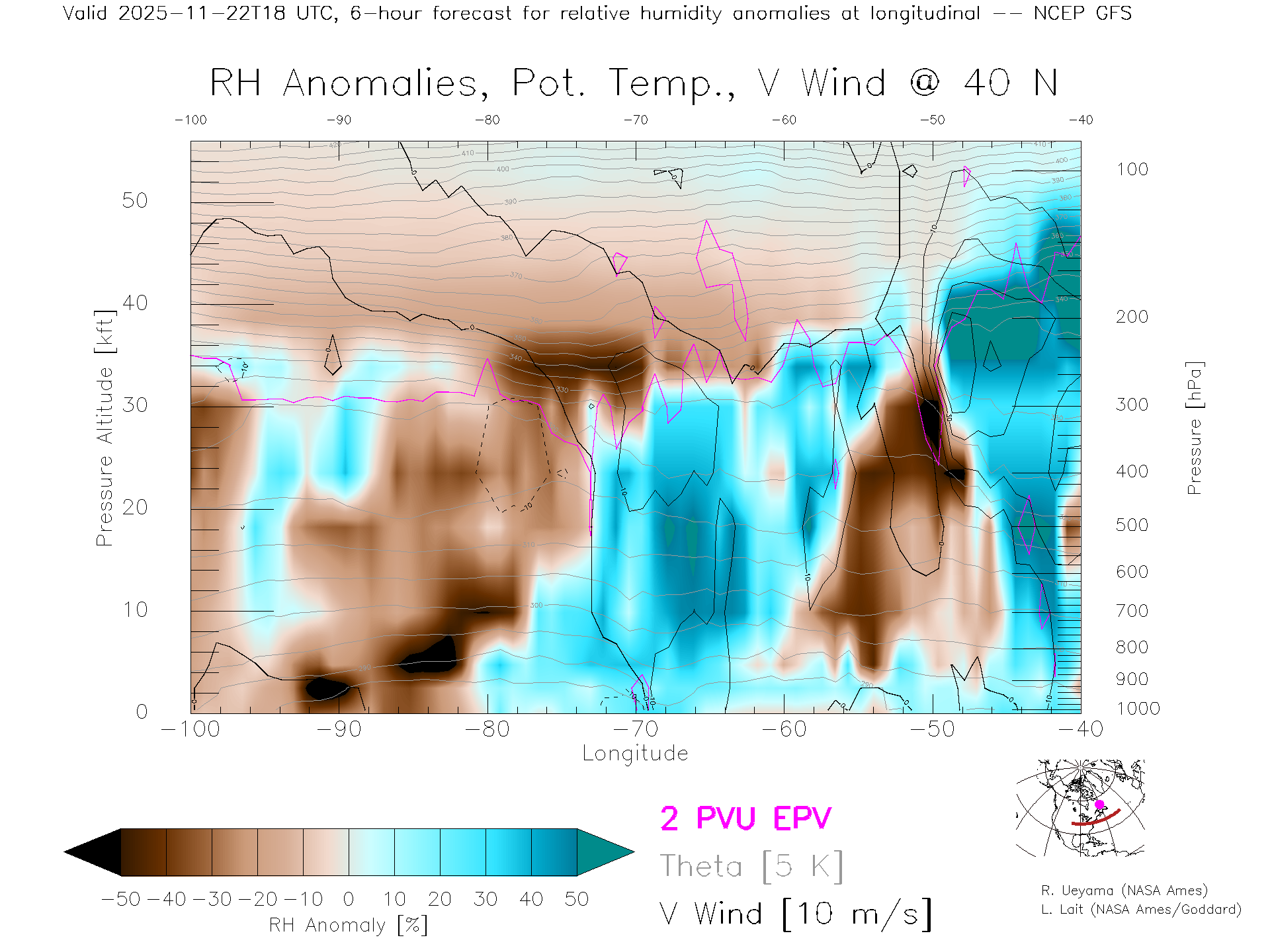 NCEP GFS Forecast Rel. Hum. X-Section (40 N)