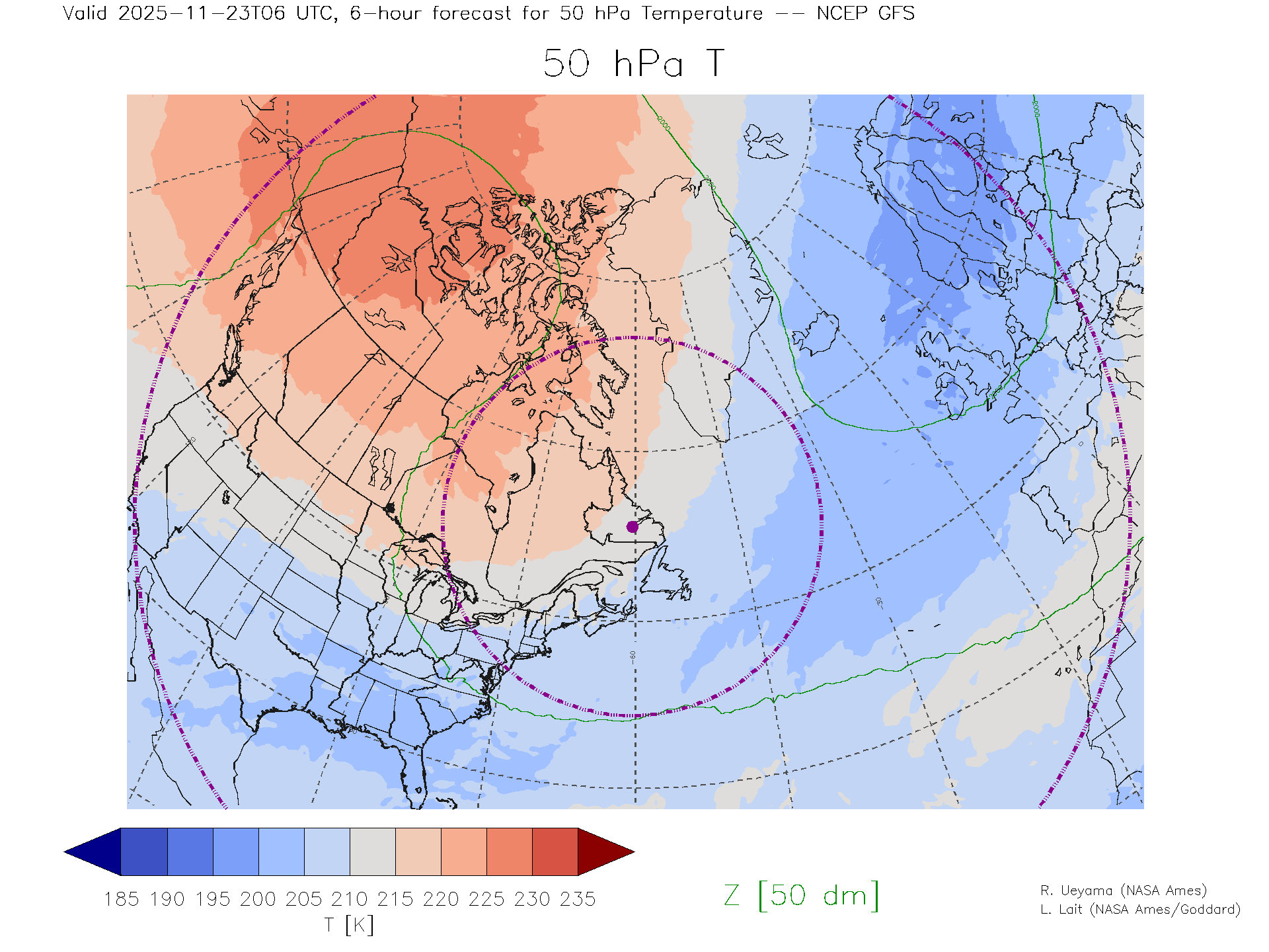 NCEP GFS Forecast 50 hPa Temp.