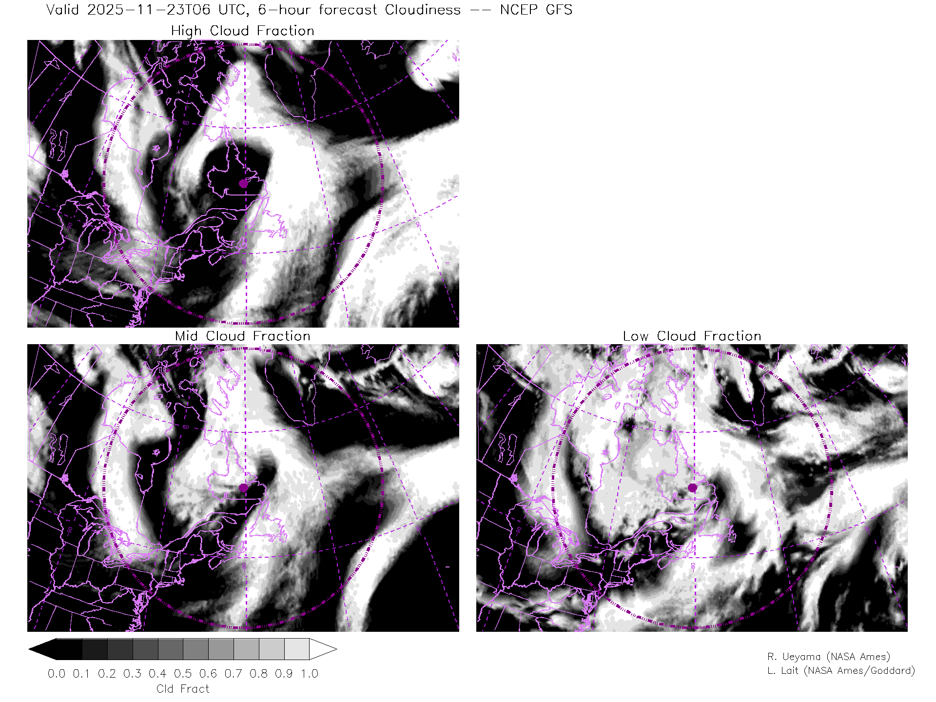 NCEP GFS Forecast Cloud Fraction (High, Mid, Low)