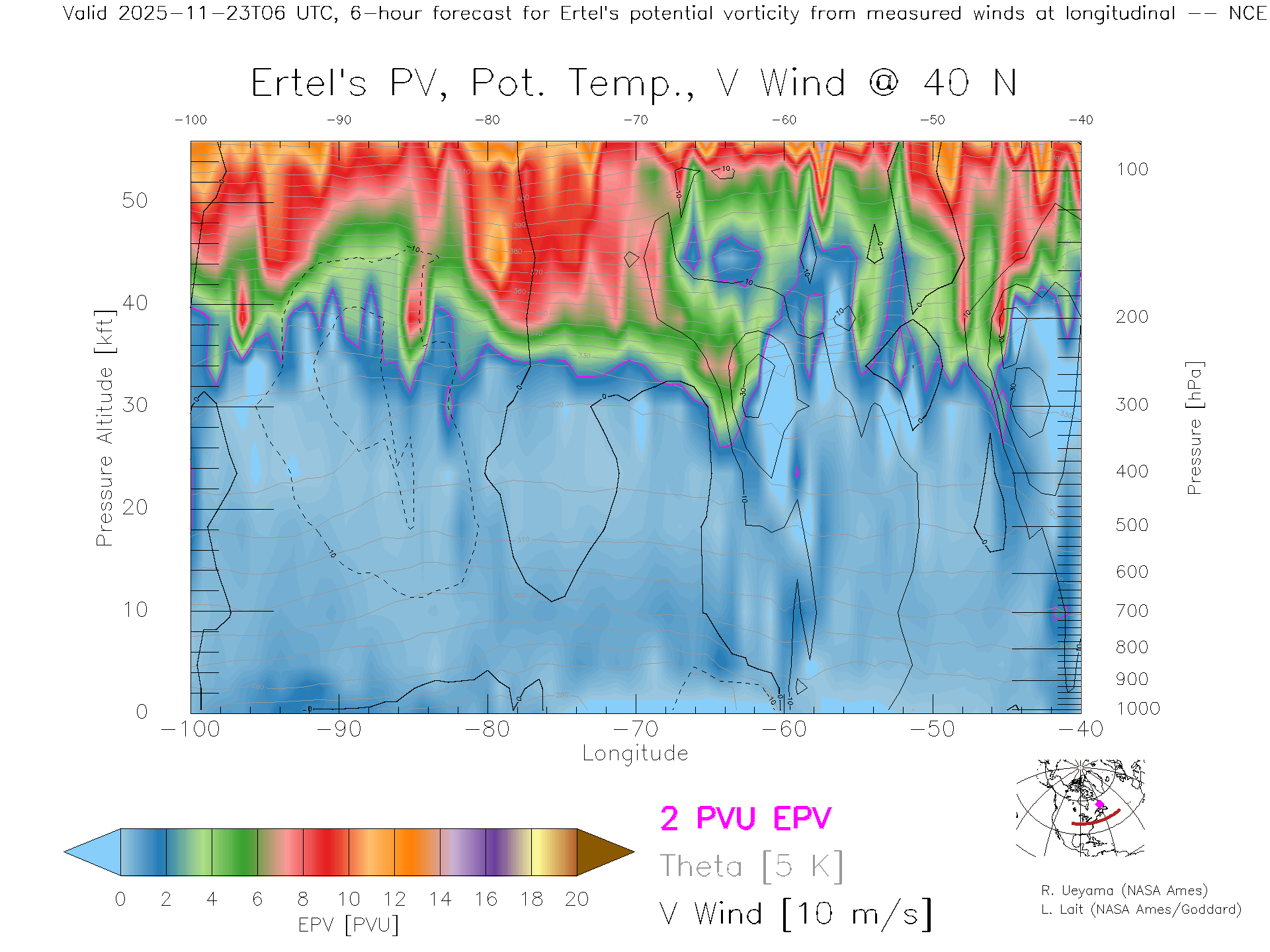 NCEP GFS Forecast PV X-Section (40 N)