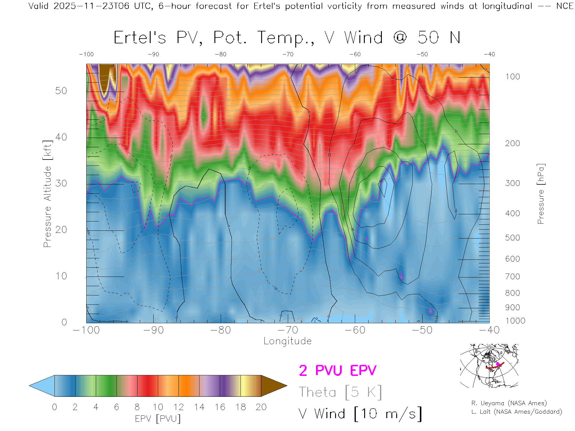 NCEP GFS Forecast PV X-Section (50 N)