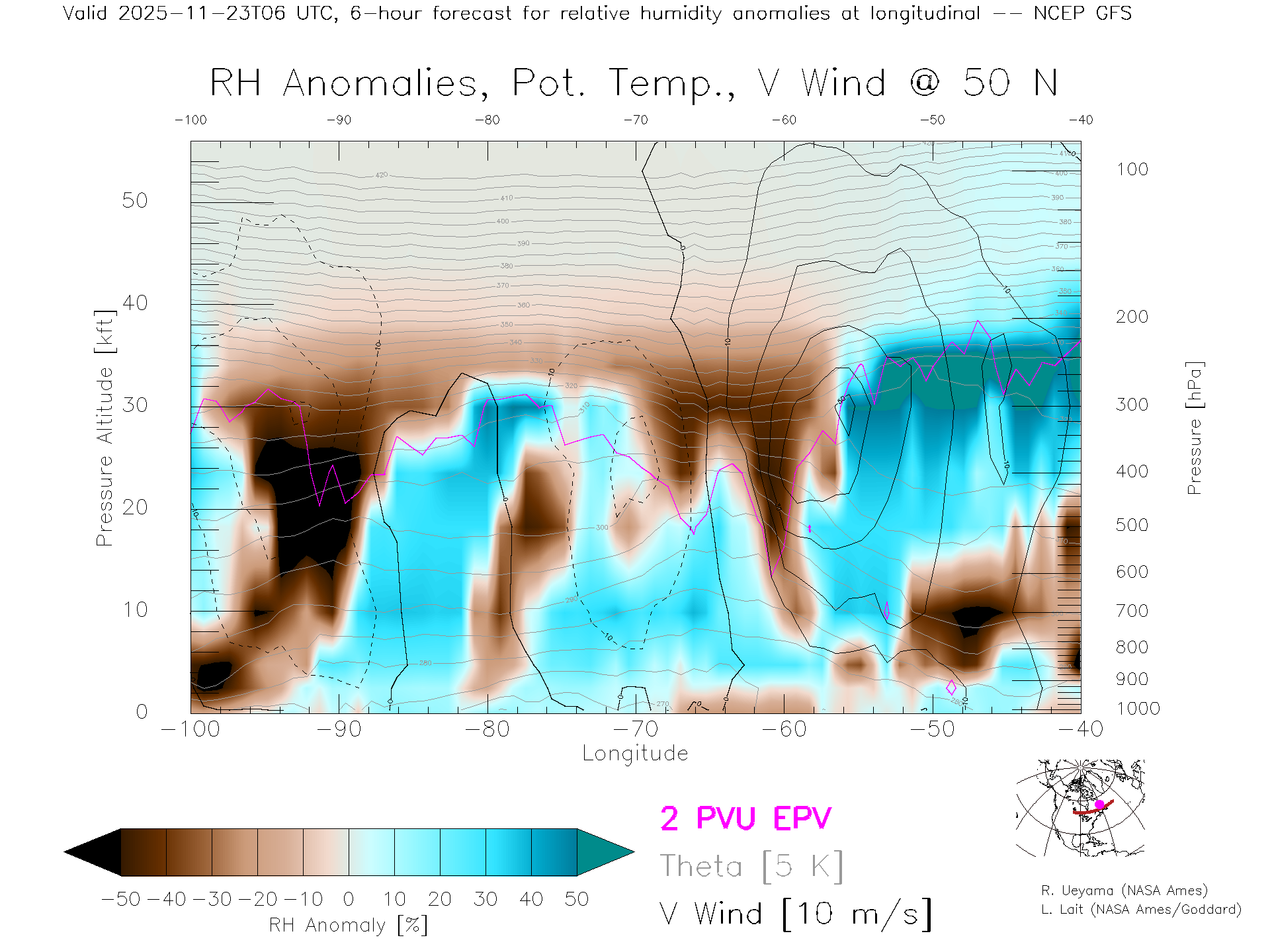 NCEP GFS Forecast Rel. Hum. X-Section (50 N)