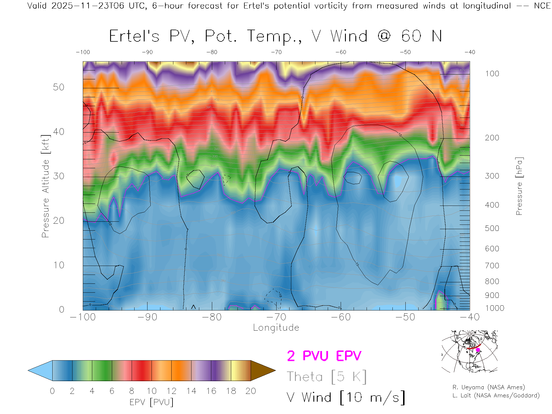 NCEP GFS Forecast PV X-Section (60 N)