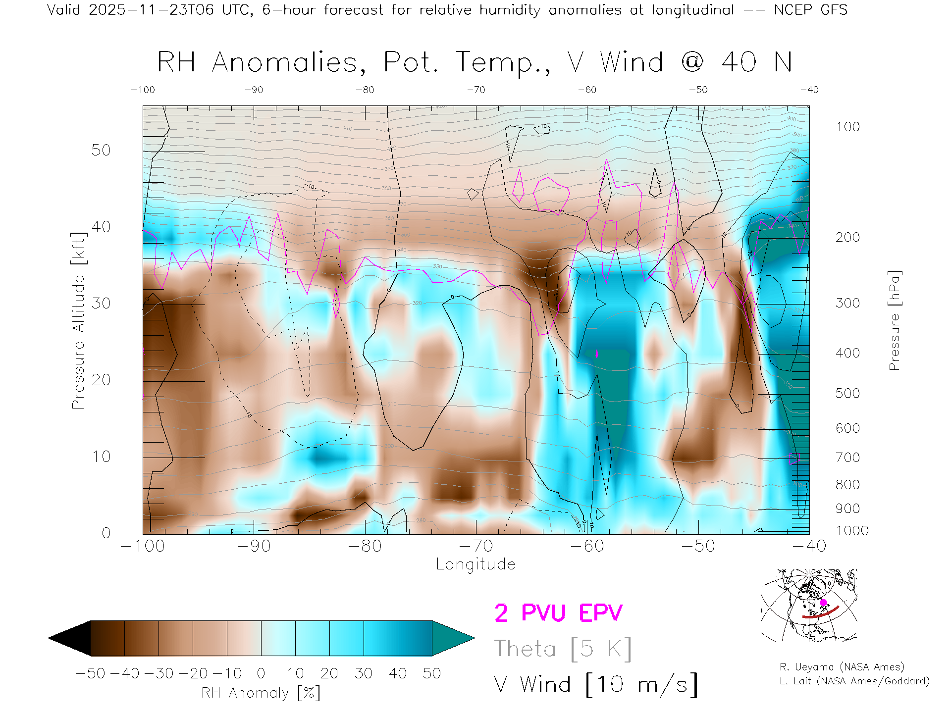 NCEP GFS Forecast Rel. Hum. X-Section (40 N)