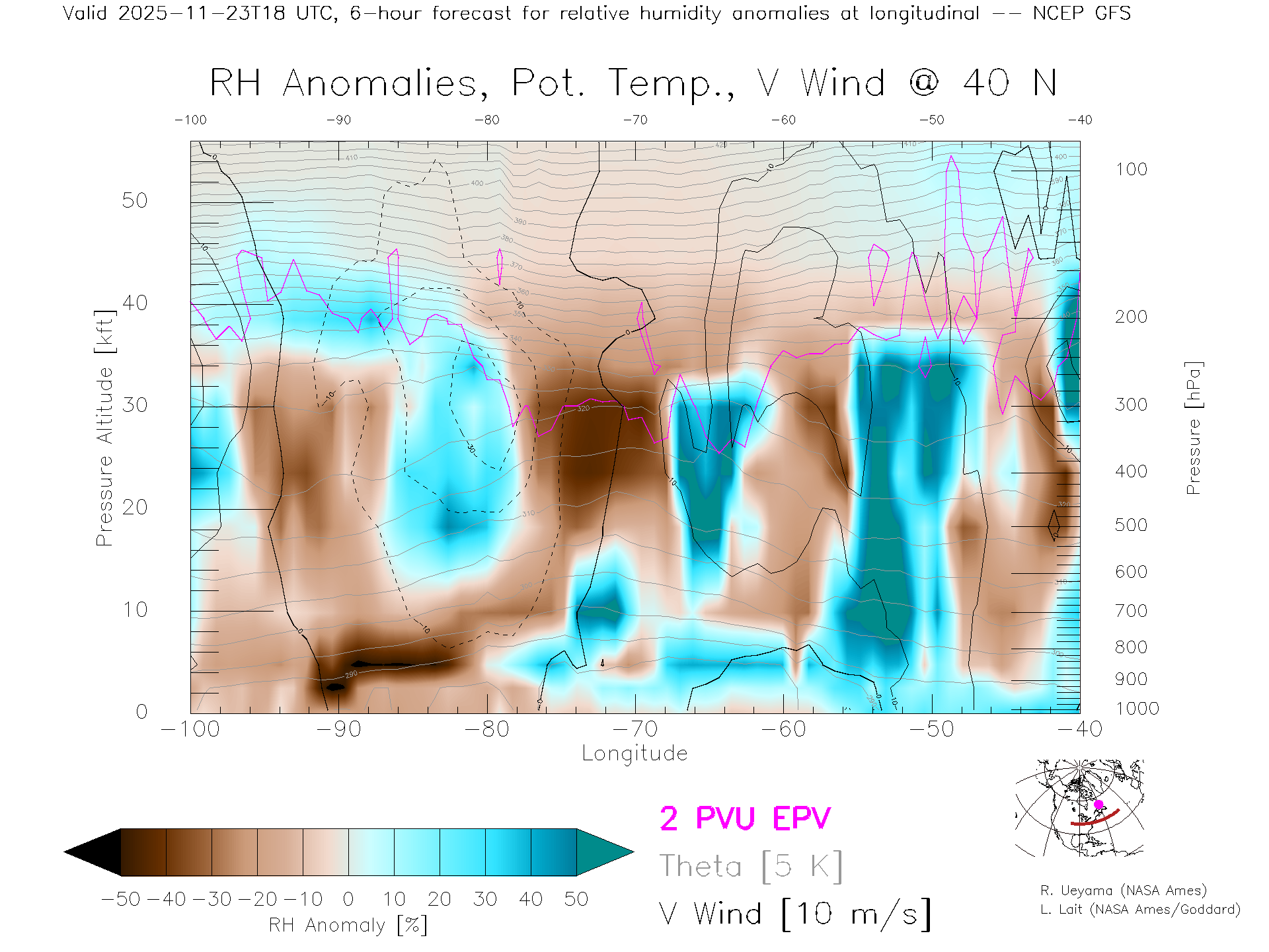 NCEP GFS Forecast Rel. Hum. X-Section (40 N)