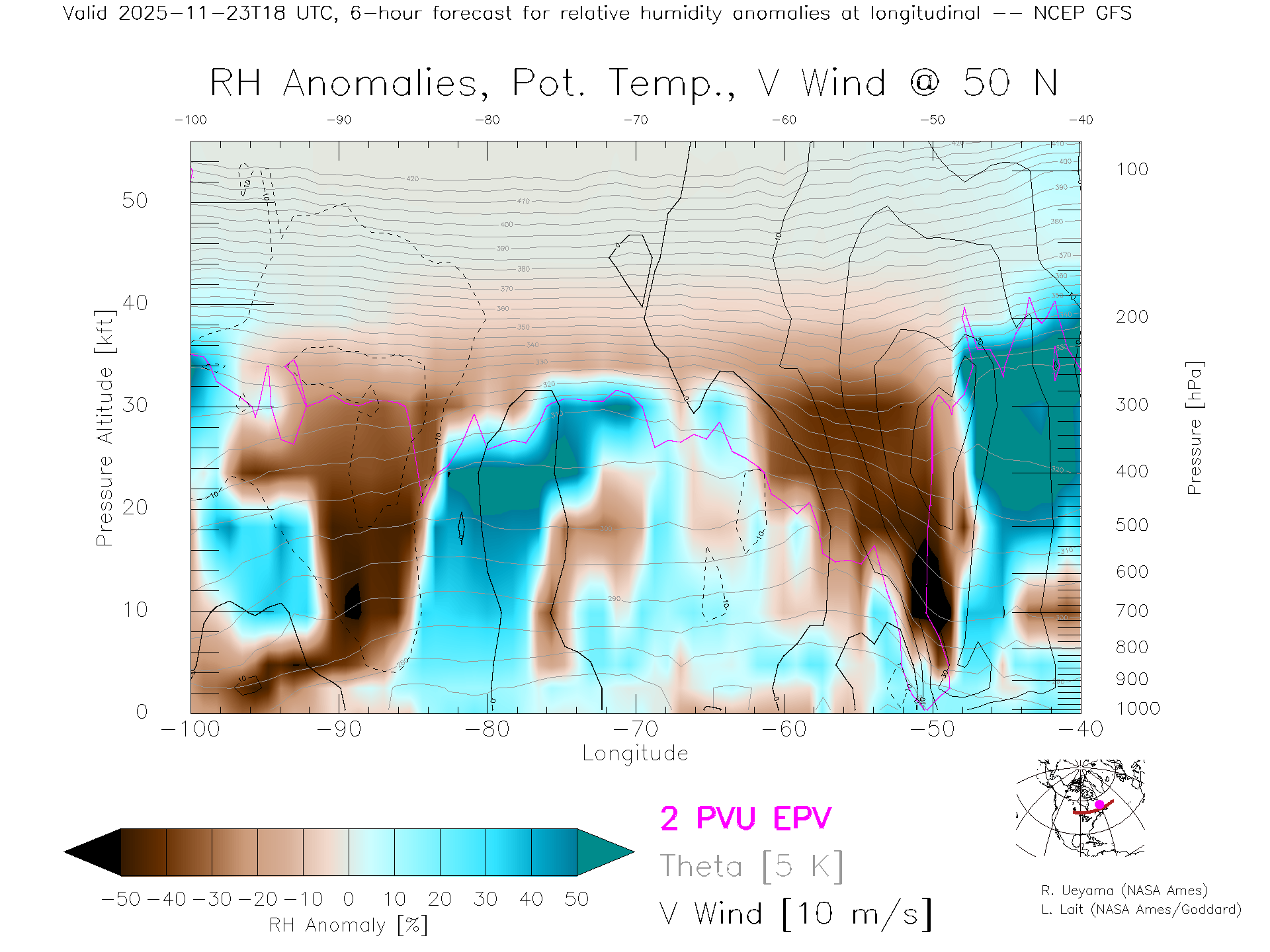 NCEP GFS Forecast Rel. Hum. X-Section (50 N)