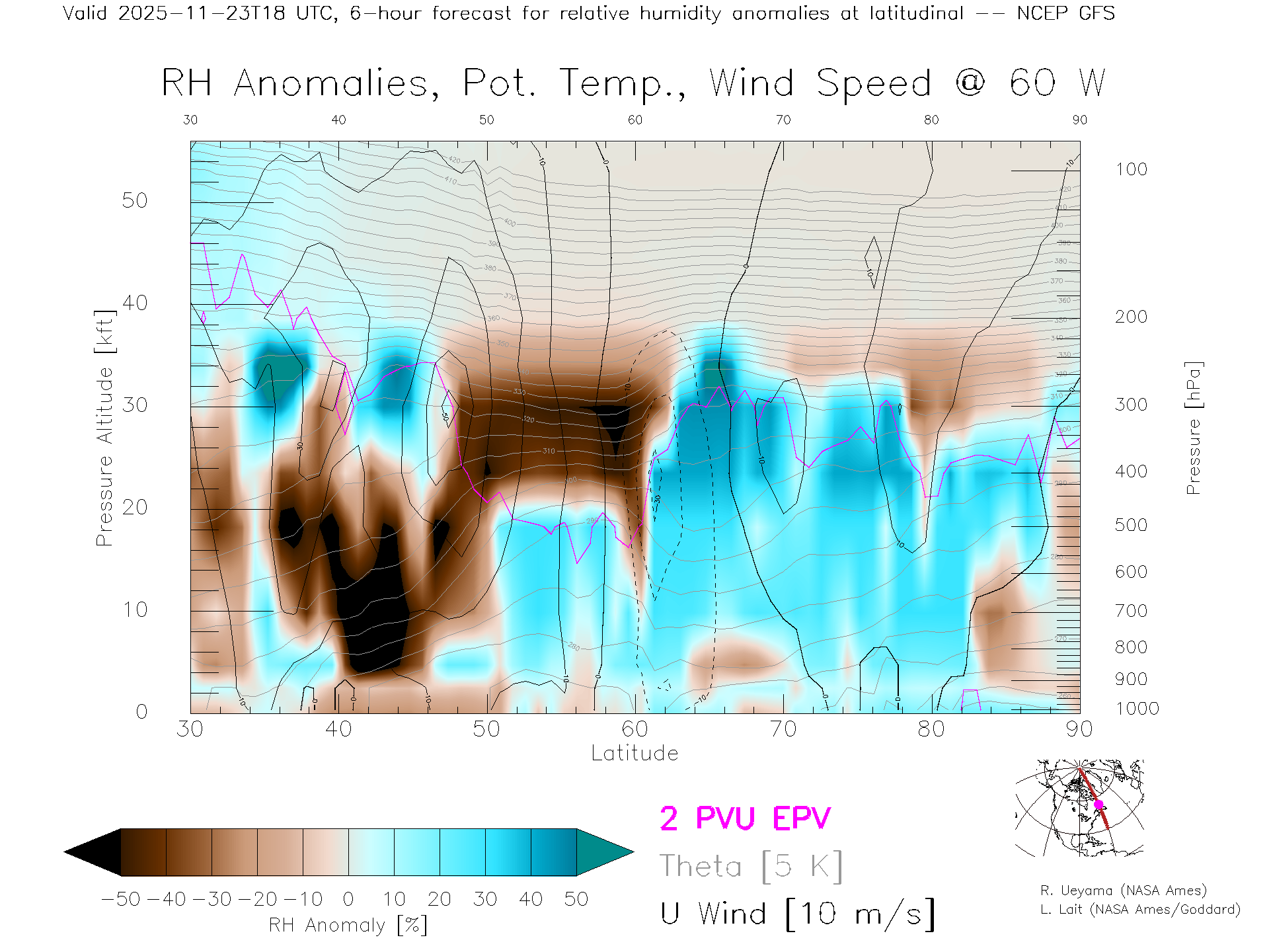 NCEP GFS Forecast Rel. Hum. X-Section (60 W)