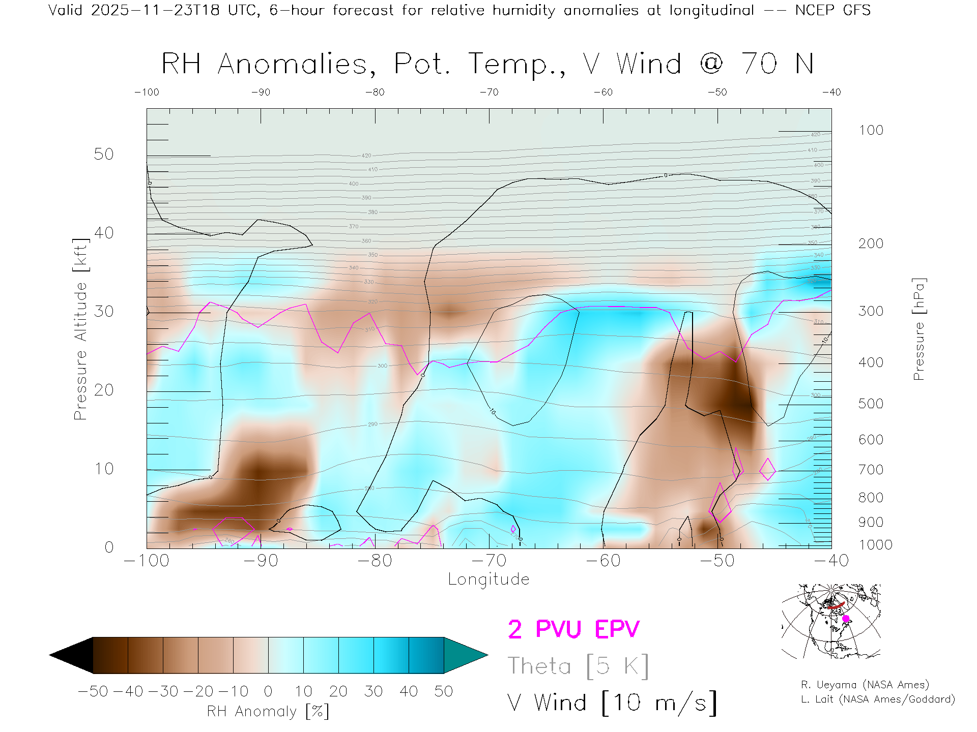 NCEP GFS Forecast Rel. Hum. X-Section (70 N)