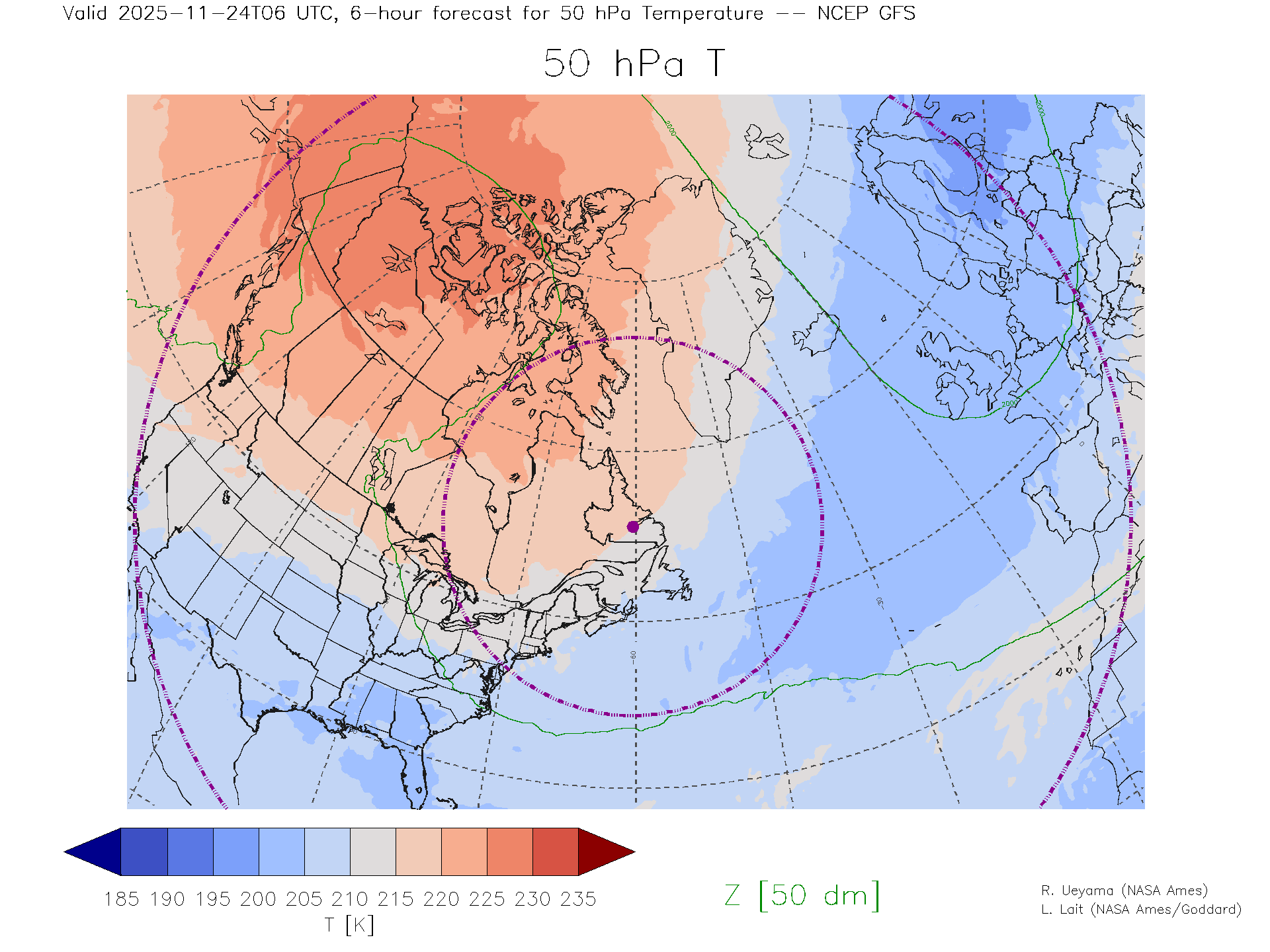 NCEP GFS Forecast 50 hPa Temp.