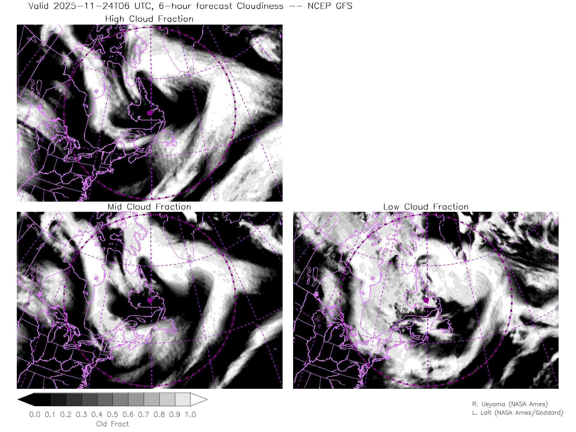 NCEP GFS Forecast Cloud Fraction (High, Mid, Low)
