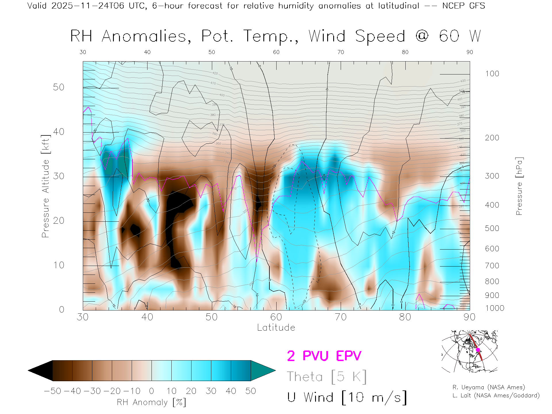NCEP GFS Forecast Rel. Hum. X-Section (60 W)