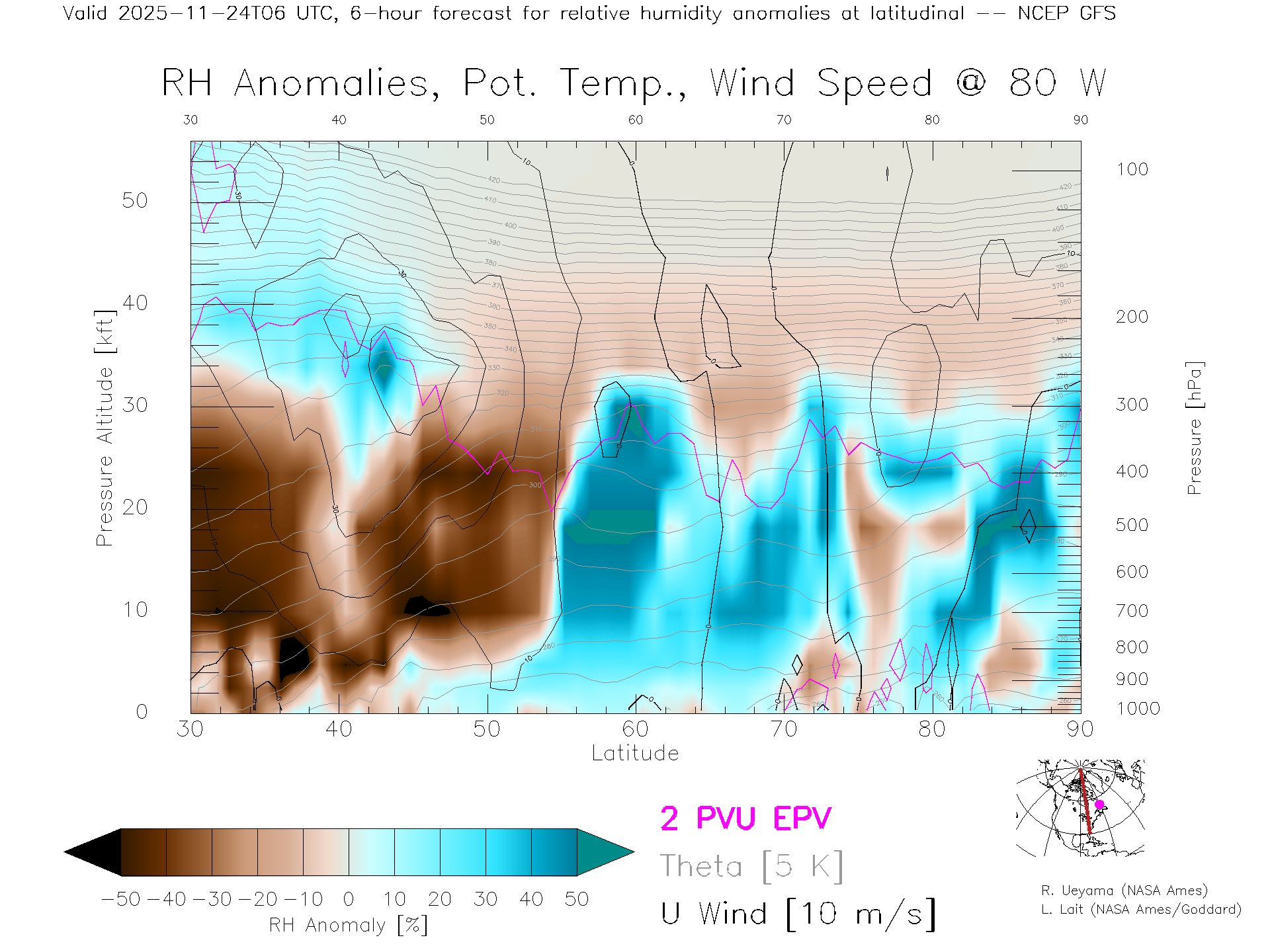 NCEP GFS Forecast Rel. Hum. X-Section (80 W)