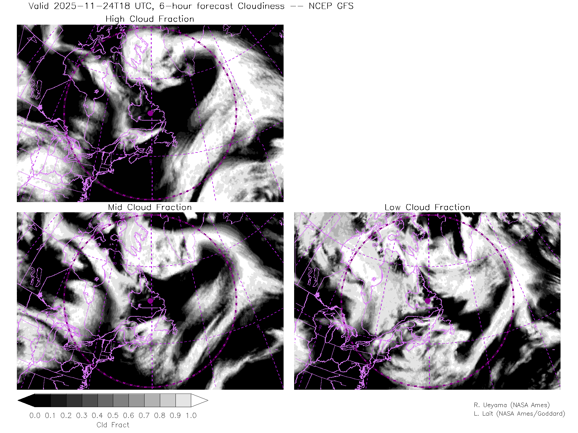 NCEP GFS Forecast Cloud Fraction (High, Mid, Low)