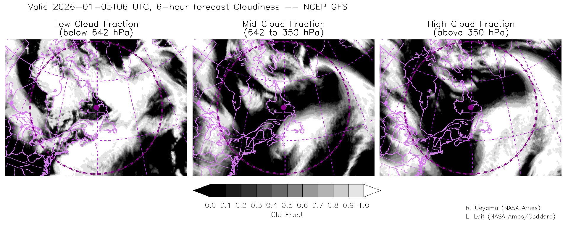 NCEP GFS Forecast Cloud Fraction (High, Mid, Low)