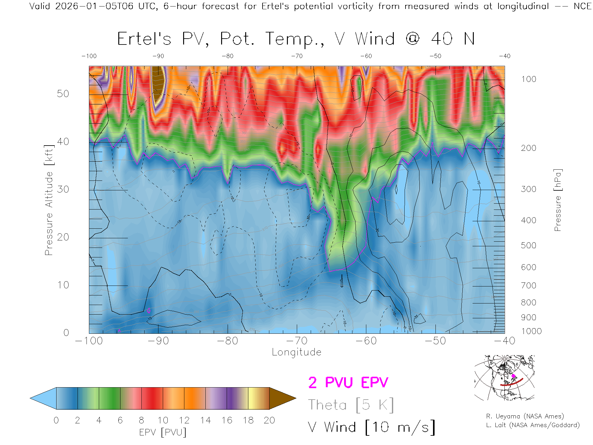 NCEP GFS Forecast PV X-Section (40 N)