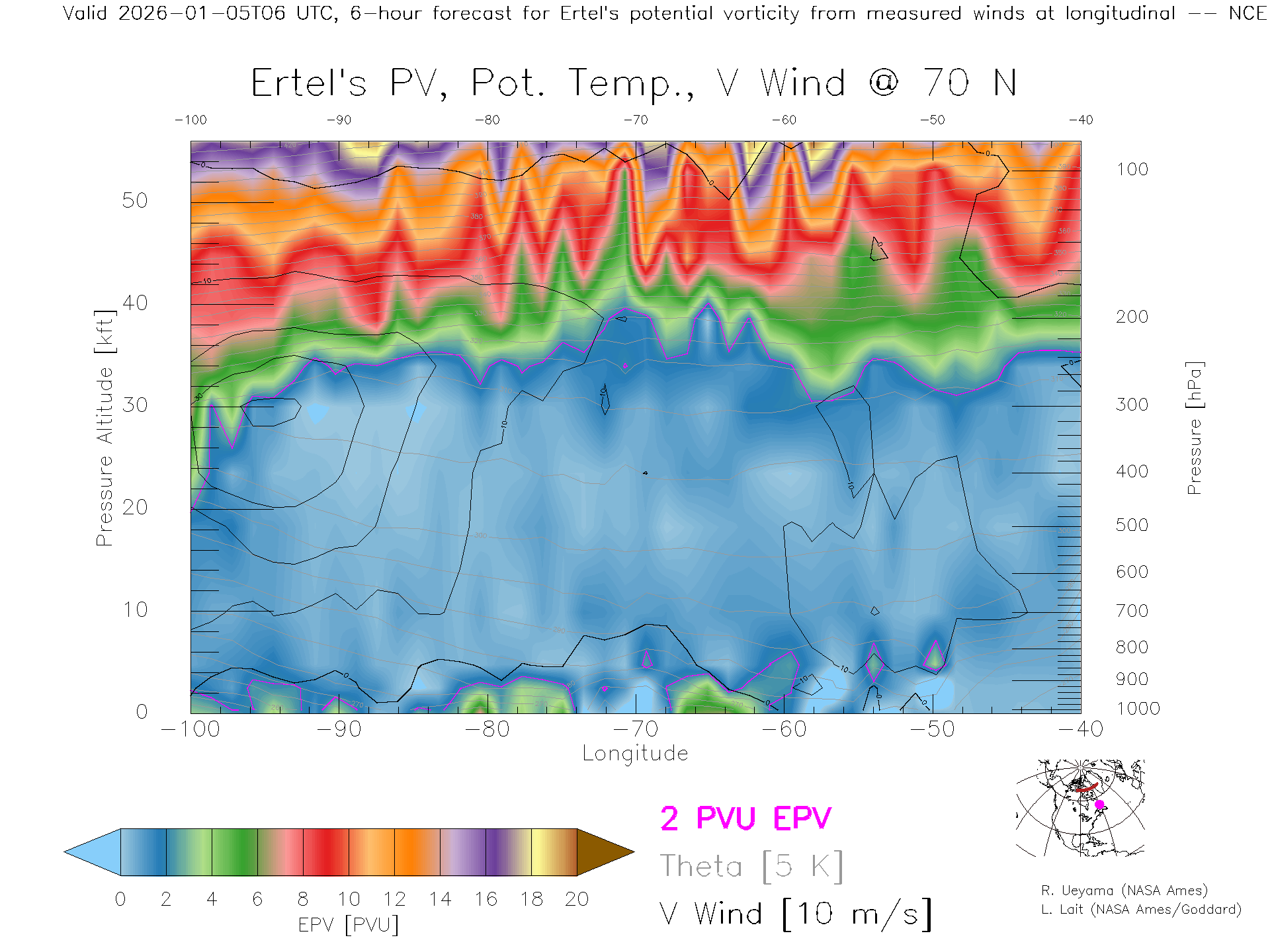 NCEP GFS Forecast PV X-Section (70 N)