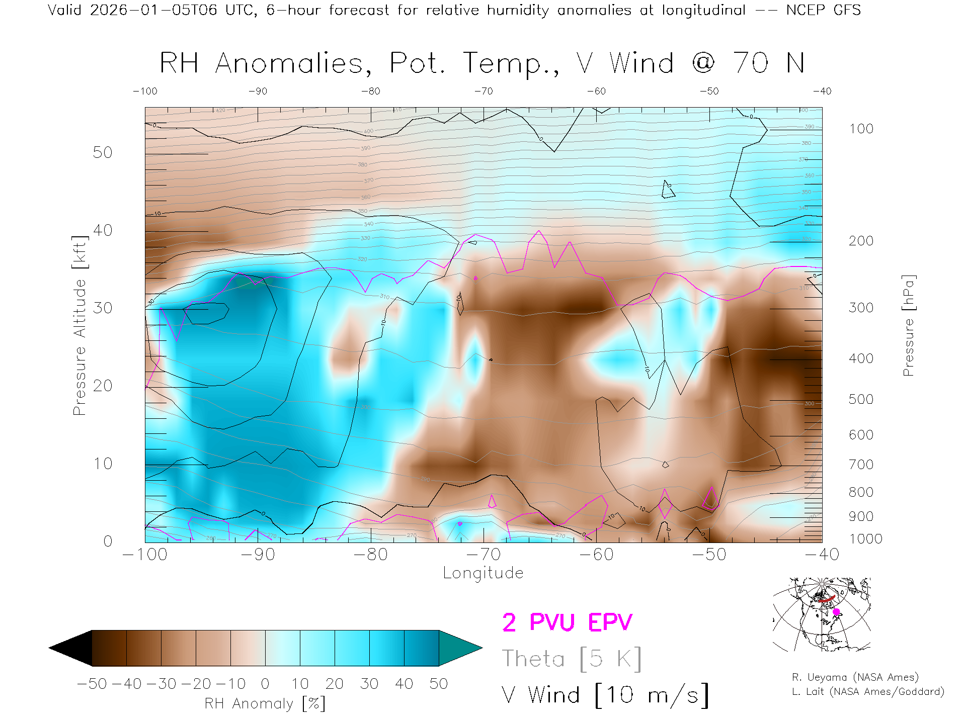 NCEP GFS Forecast Rel. Hum. X-Section (70 N)