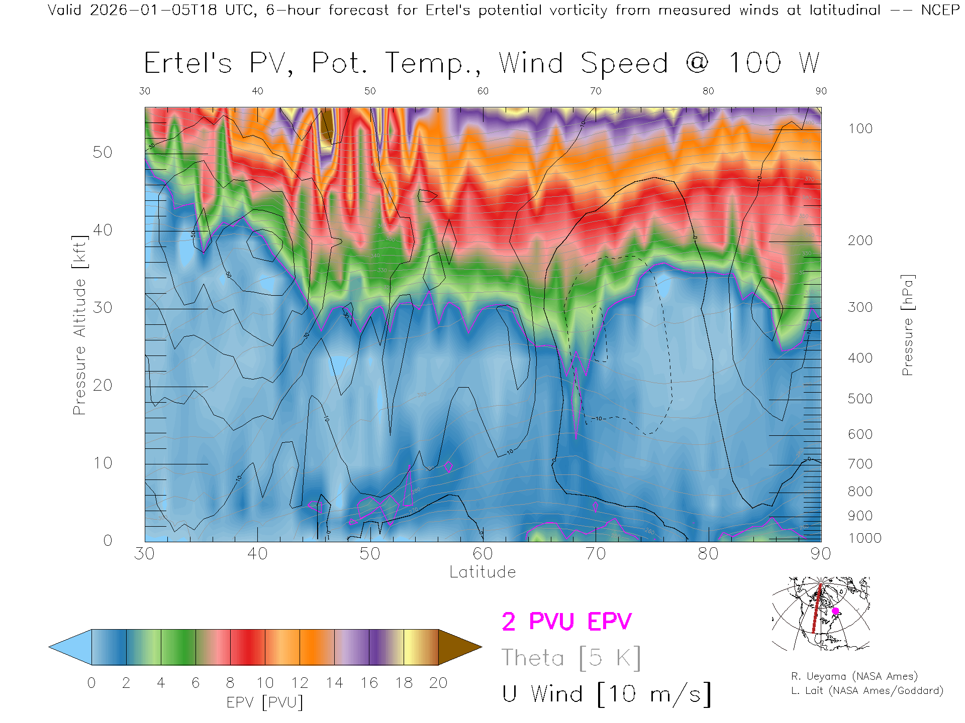 NCEP GFS Forecast PV X-Section (100 W)