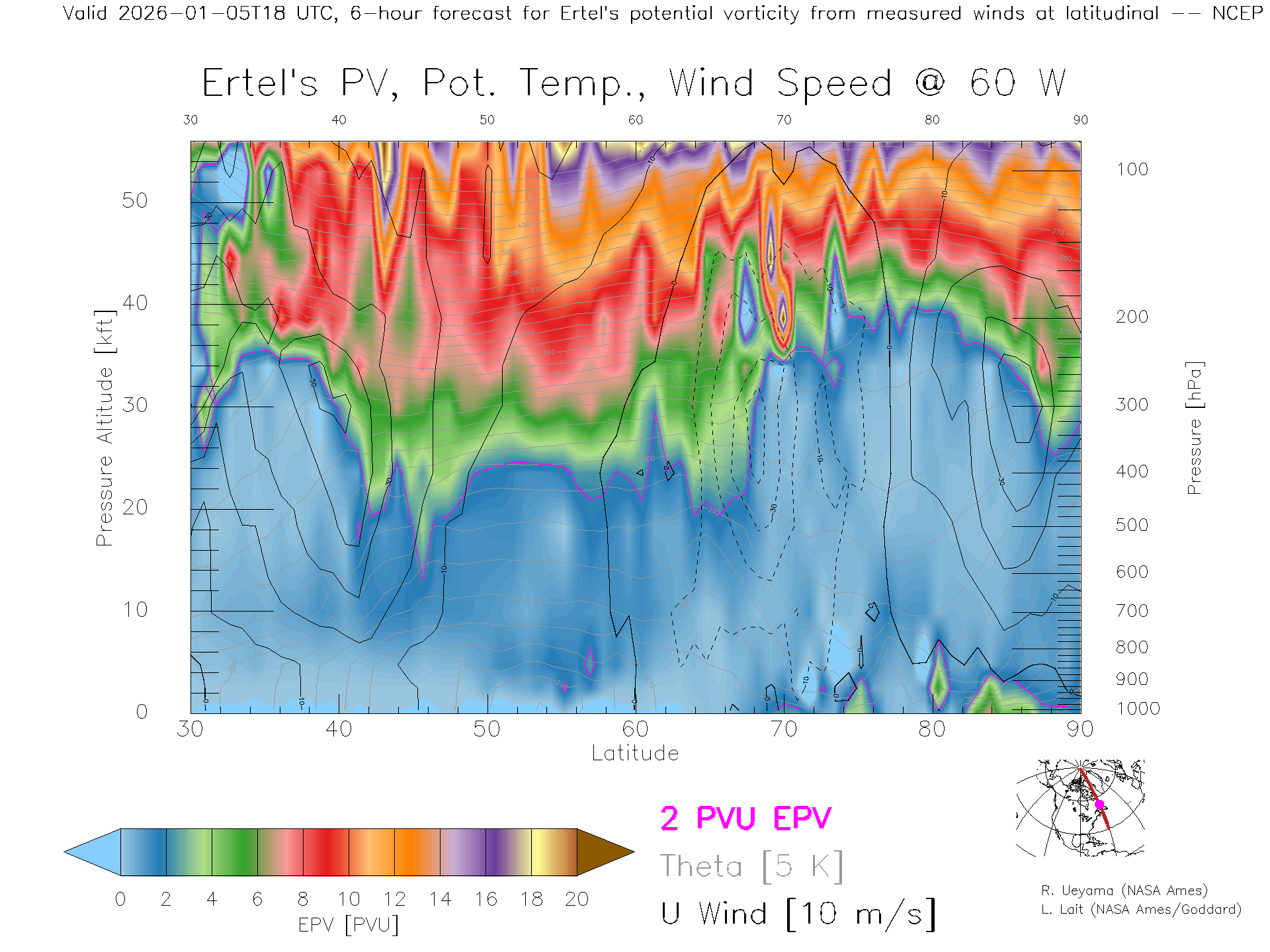 NCEP GFS Forecast PV X-Section (60 W)
