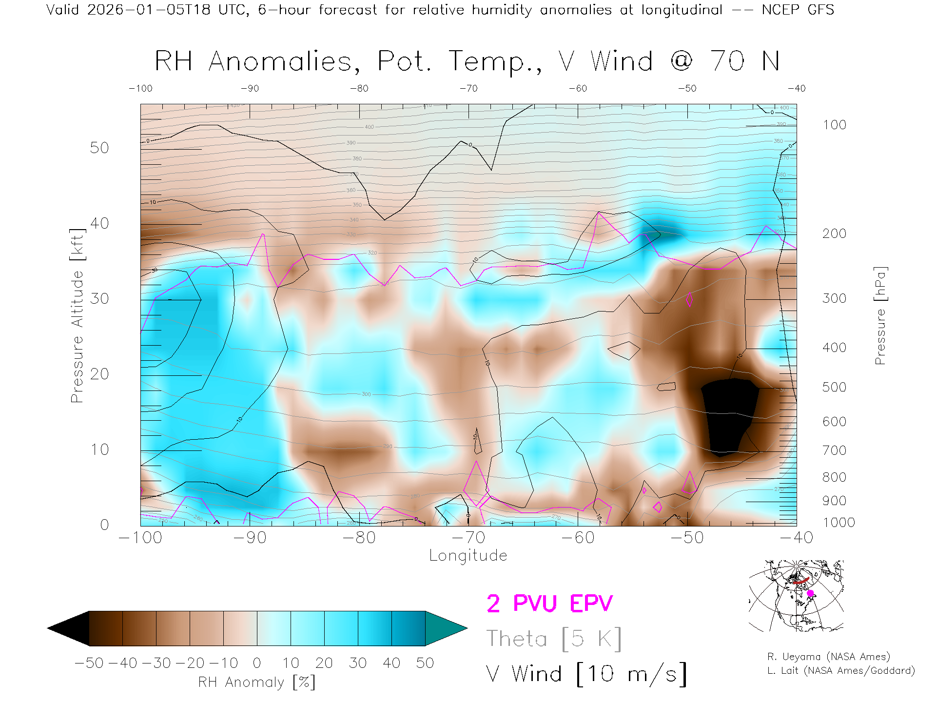 NCEP GFS Forecast Rel. Hum. X-Section (70 N)