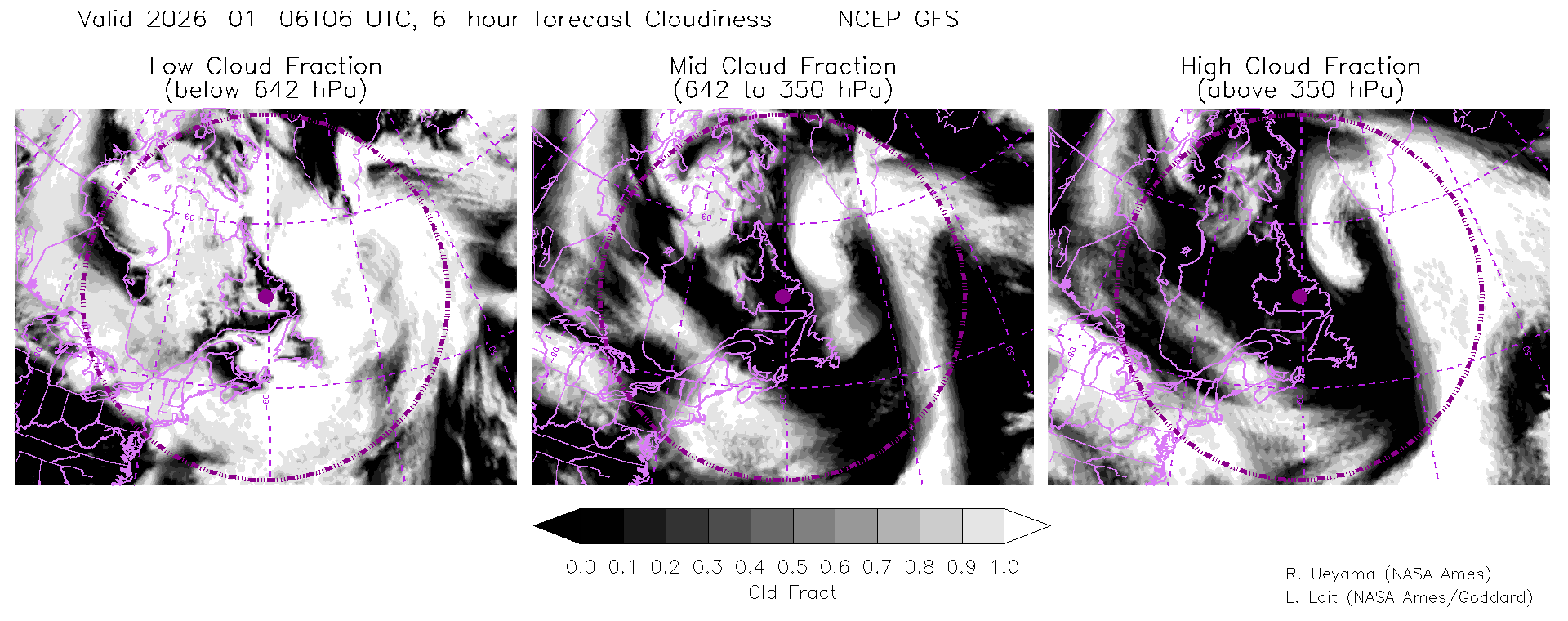 NCEP GFS Forecast Cloud Fraction (High, Mid, Low)