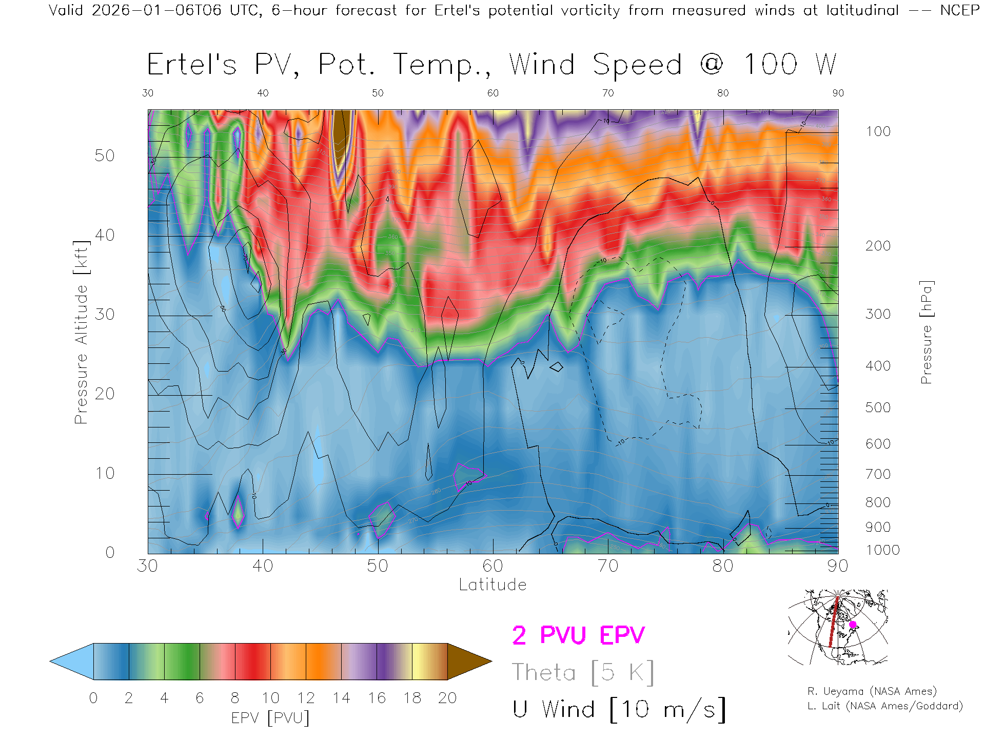 NCEP GFS Forecast PV X-Section (100 W)