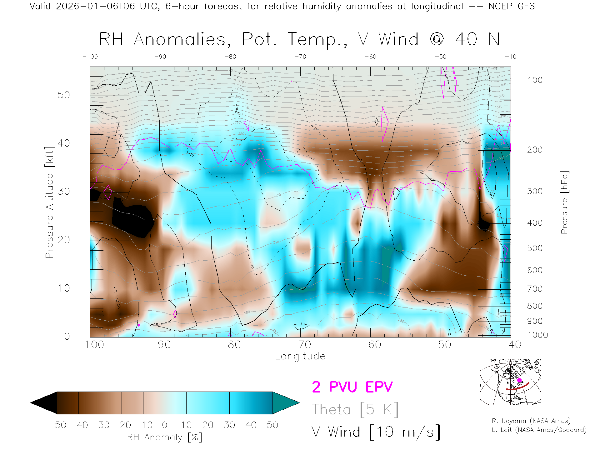 NCEP GFS Forecast Rel. Hum. X-Section (40 N)