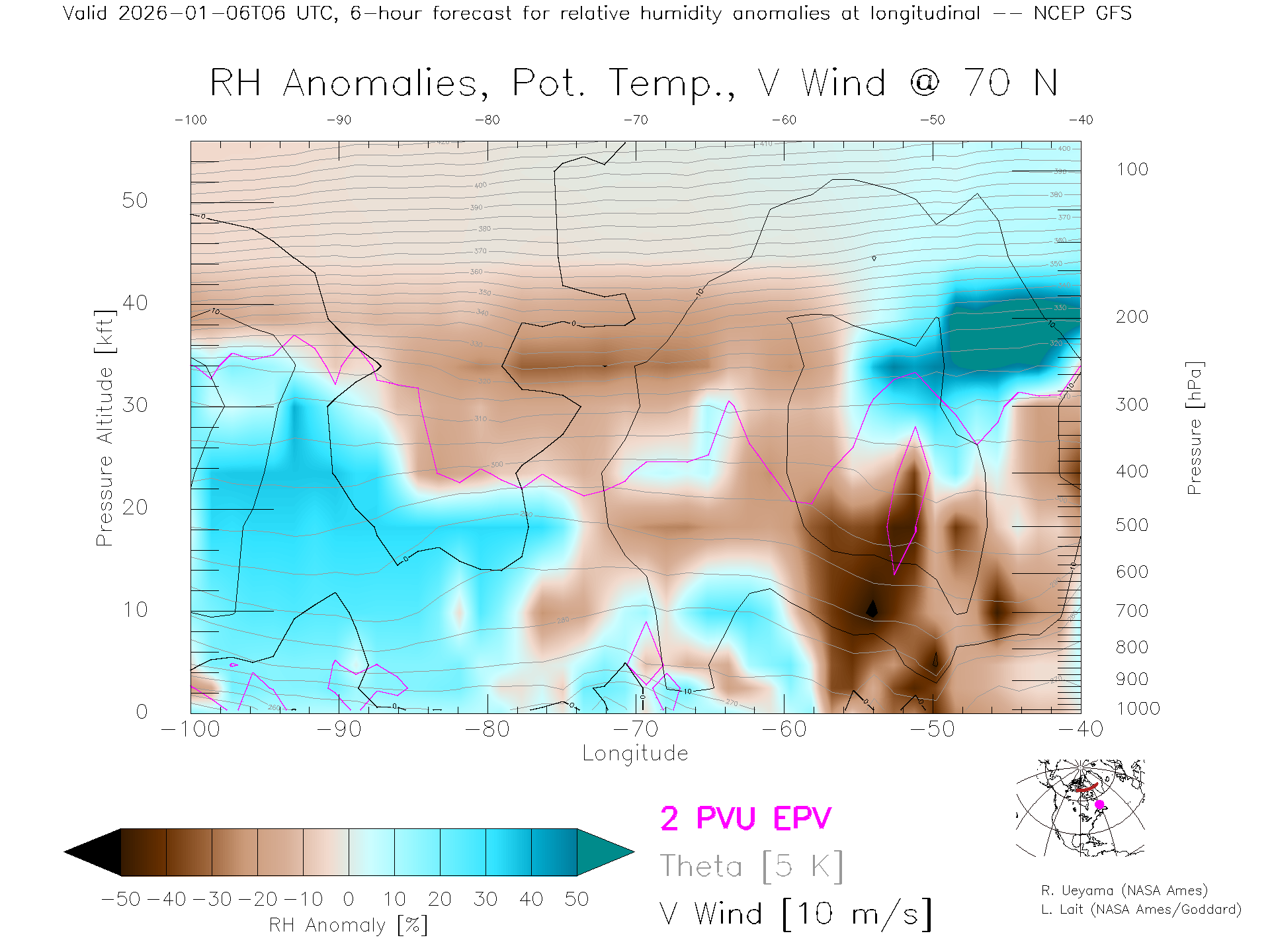 NCEP GFS Forecast Rel. Hum. X-Section (70 N)