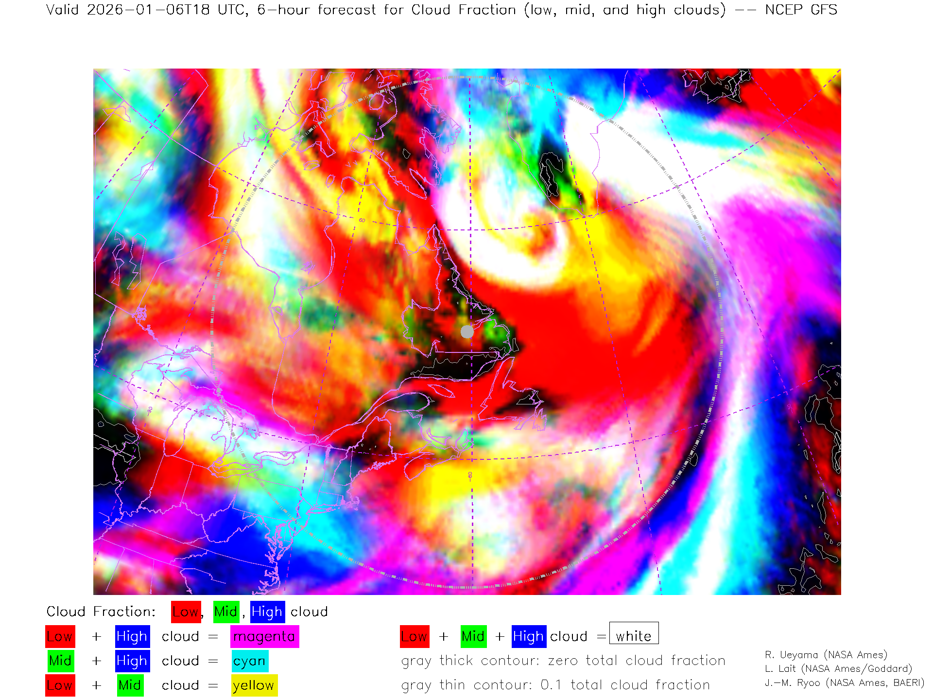 NCEP GFS Forecast Low-, Mid- and High-level Cloud Fraction