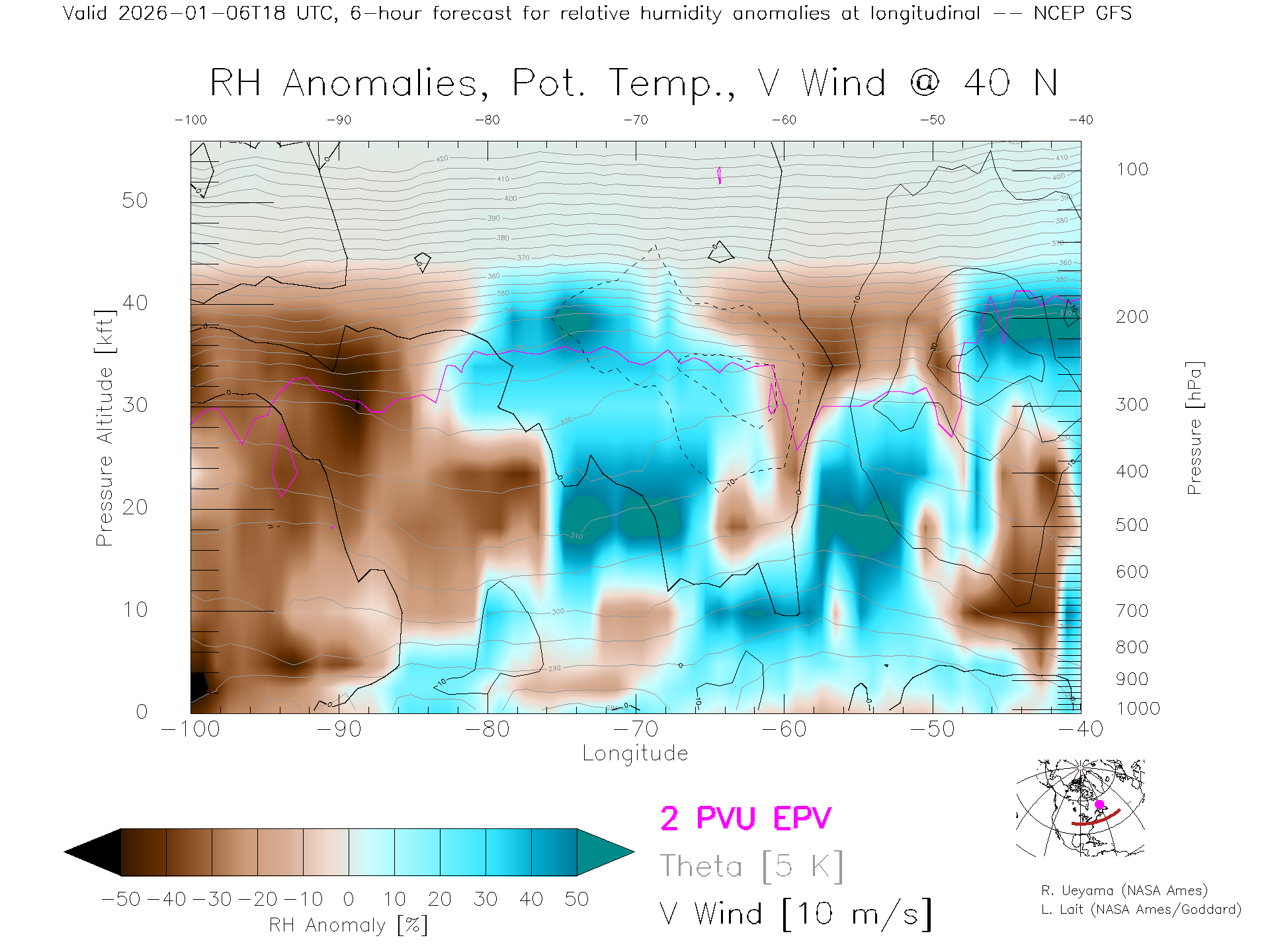 NCEP GFS Forecast Rel. Hum. X-Section (40 N)