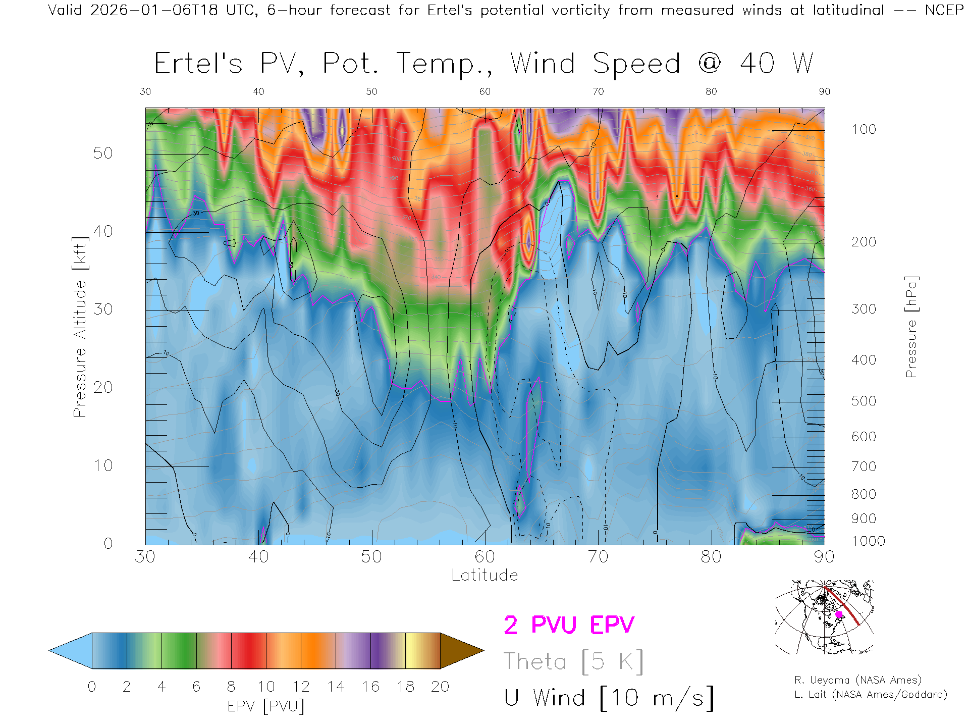 NCEP GFS Forecast PV X-Section (40 W)