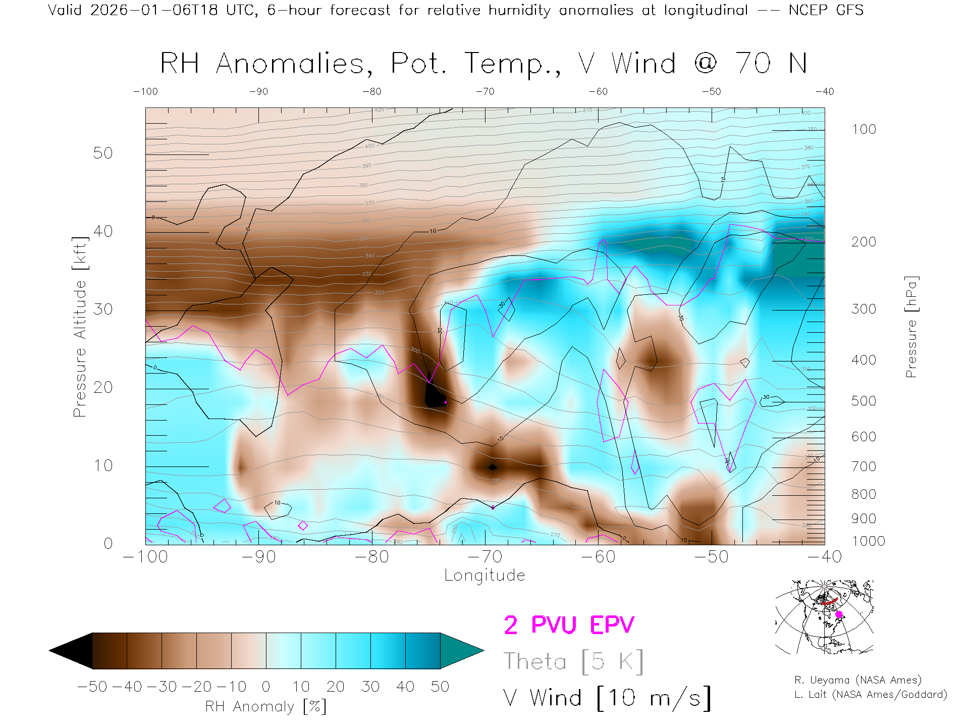 NCEP GFS Forecast Rel. Hum. X-Section (70 N)